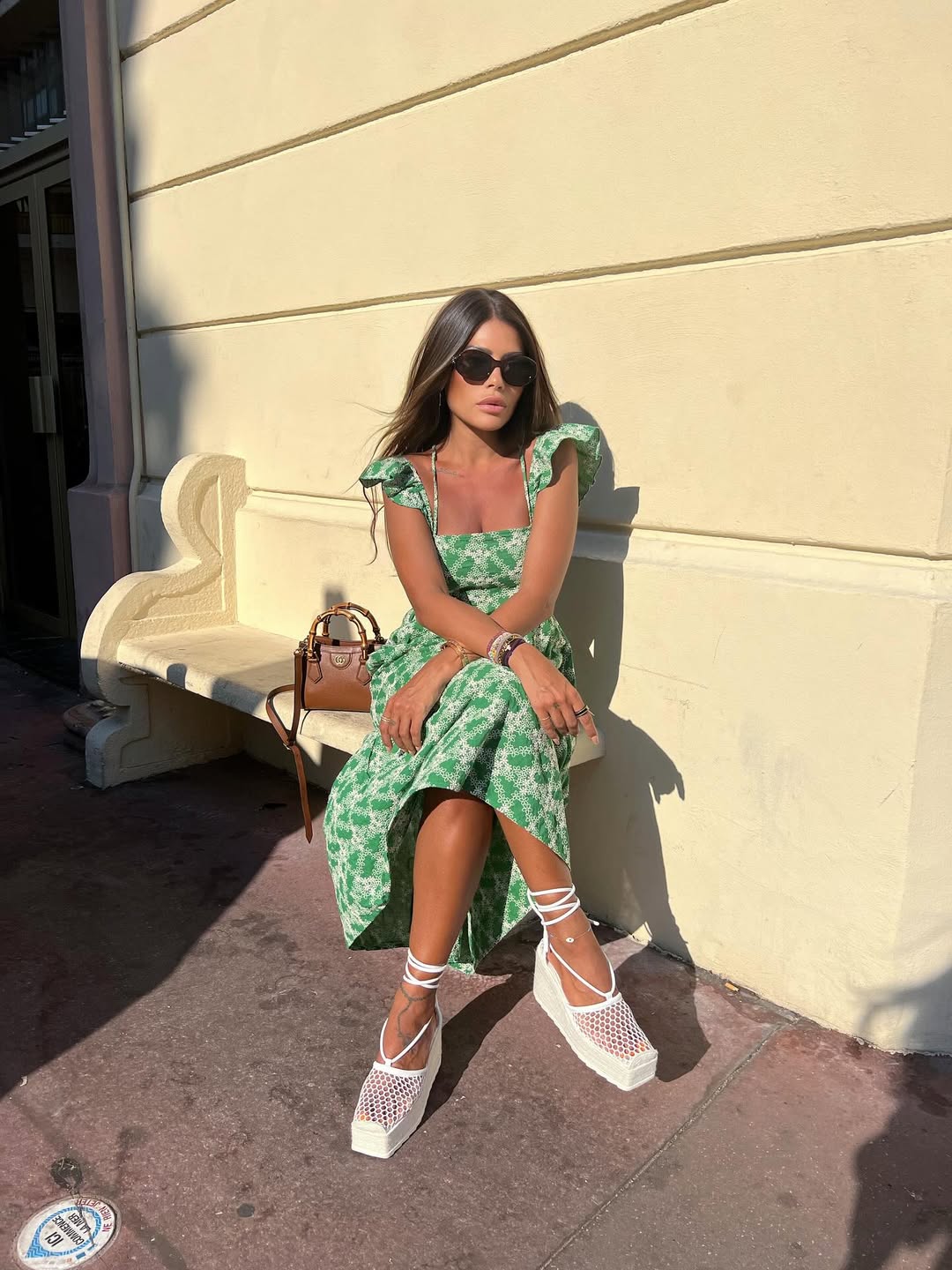 أما المصمّمة والمؤثرة العنود بدر فقد اختارت أسلوباً أنثوياً بامتياز، من خلال فستان صيفي أخضر منقوش، تميّز بأكمامه المزيّنة بالكشاكش الناعمة. هذه الإطلالة تعكس أسلوبها المتجدّد، حيث تدمج بين الألوان الحيوية والتفاصيل الدقيقة، ما يجعلها دائماً أيقونة للأناقة الراقية.