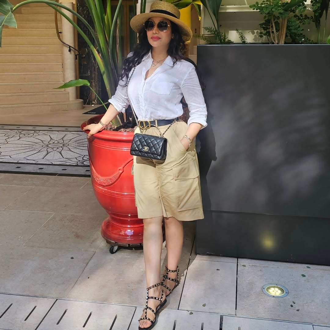 فاجأت الإعلامية لجين عمران متابعيها هذا الصيف بإطلالة غير تقليدية ومليئة بالحيوية. فقد ظهرت بقميص أبيض كلاسيكي نسّقته مع شورت بيج قصير وقبّعة كبيرة من القش، ما منحها مظهراً منعشاً ومختلفاً عن إطلالاتها المعتادة. هذا اللوك البسيط والمريح مثالي لأيام السفر الطويلة أو الاسترخاء تحت أشعة الشمس.