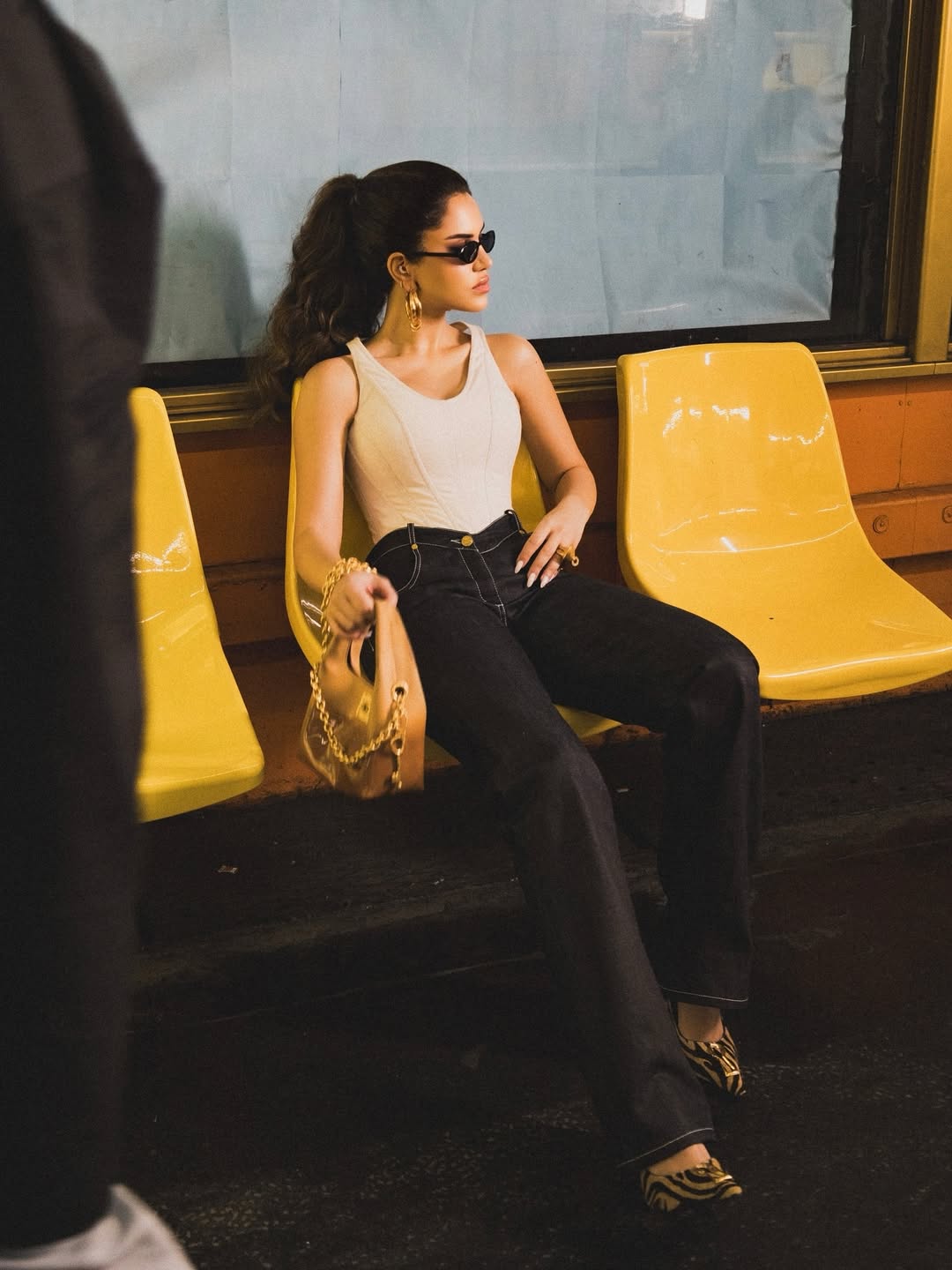أطلّت نجود الرميحي بلوك عصري وشبابي من خلال توب بيج ضيّقة بأسلوب الكورسيه، نسّقتها مع بنطال جينز أسود عالي الخصر، لتمنح الإطلالة توازناً بين الرقي والعصرية. هذا الأسلوب يليق بالمناسبات المسائية الصيفية، ويُظهر كيف يمكن المزج بين القطع الكلاسيكية والحديثة بأسلوب ذكي.