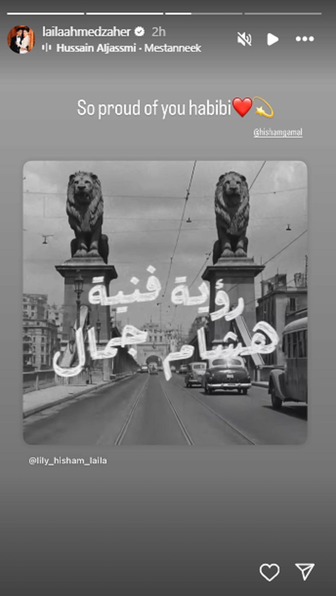 نشرت الفنانة الشابة ليلى أحمد زاهر، عبر خاصية القصص المصورة الملحقة على حسابها الخاص بـ"إنستغرام" مقطعاً من فيديو كليب "مستنيك"، الذي يتعاون فيه زوجها الفنان هشام جمال مع النجم الإماراتي حسين الجسمي، وجهت لزوجها من خلاله رسالة دعم على هذه الخطوة الفنية الكبيرة في مشواره الفني.