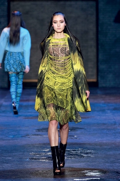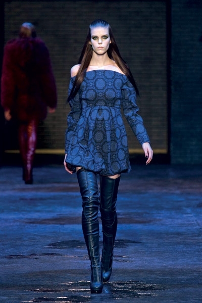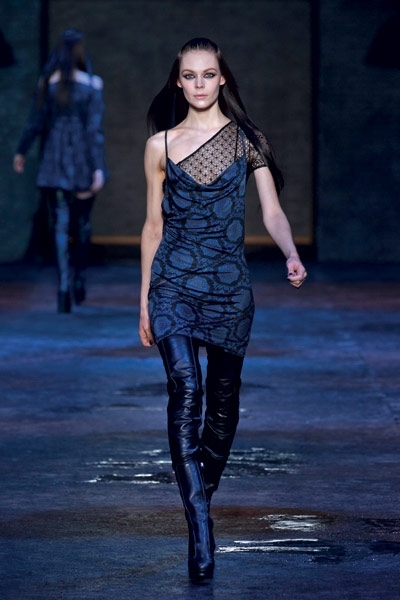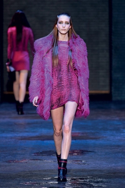 في Versus الفتاة عصريّة، حادّة، ومتمرّدة! القصّات قصيرة جدّاً، ارتدتها العارضات مع جزمات طويلة مطبوعة فوق الركبة خطفت الأنظار! الفساتين مفتوحة وأحياناً ممزّقة عند الأجناب، وأخرى ظهرها مفتوح ومغطّى بالشبك، وغيرها أضيفت إليها الباييت، وبعضها شفّاف، وبعضها بالدانتيل. تنانير قصيرة مع سحّابات من الأمام، جلد مشبوك على السراويل والفساتين...