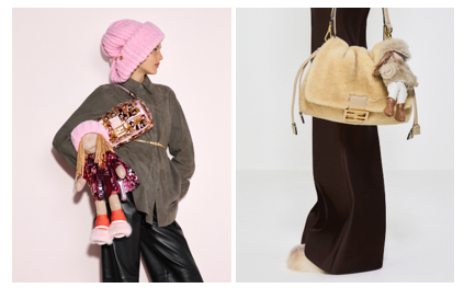 ينطلق الشغف بالحلي المتدلية مع FENDI BFF Charms بحجميها Maxi وMini. وكانت هذه الشخصيات المصغّرة قد ظهرت للمرة الأولى على منصة عرض أزياء مجموعة خريف وشتاء 2025-2026 الخاصة بذكرى تأسيس الدار، لتحظى على الفور بمكانة القطع التي لا بد من اقتنائها بالنسبة إلى هواة الجمع، من أجل إضفاء لمسة مرحة على كل حقيبة. وقد طُرحت الحلي ذات الحجم الكبير ضمن إصدار محدود، وأتت مصنوعةً من أقمشة وفراء مُعاد تدويرها، لتجمع بين الحِرفية العالية للدار وروحها المرحة وإبداعها المستدام.