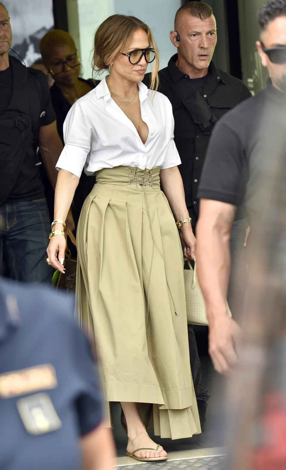 تمضي النجمة جينيفر لوبيز عطلتها الصيفية في إيطاليا، ومن المقرر أن تُحيي حفلاً موسيقياً هناك، وقد شوهدت في الشارع بعد خروجها من المطار وهي محاطة برجال الأمن، واختارت إطلالة أنيقة ومريحة وهادئة تناسب السفر.