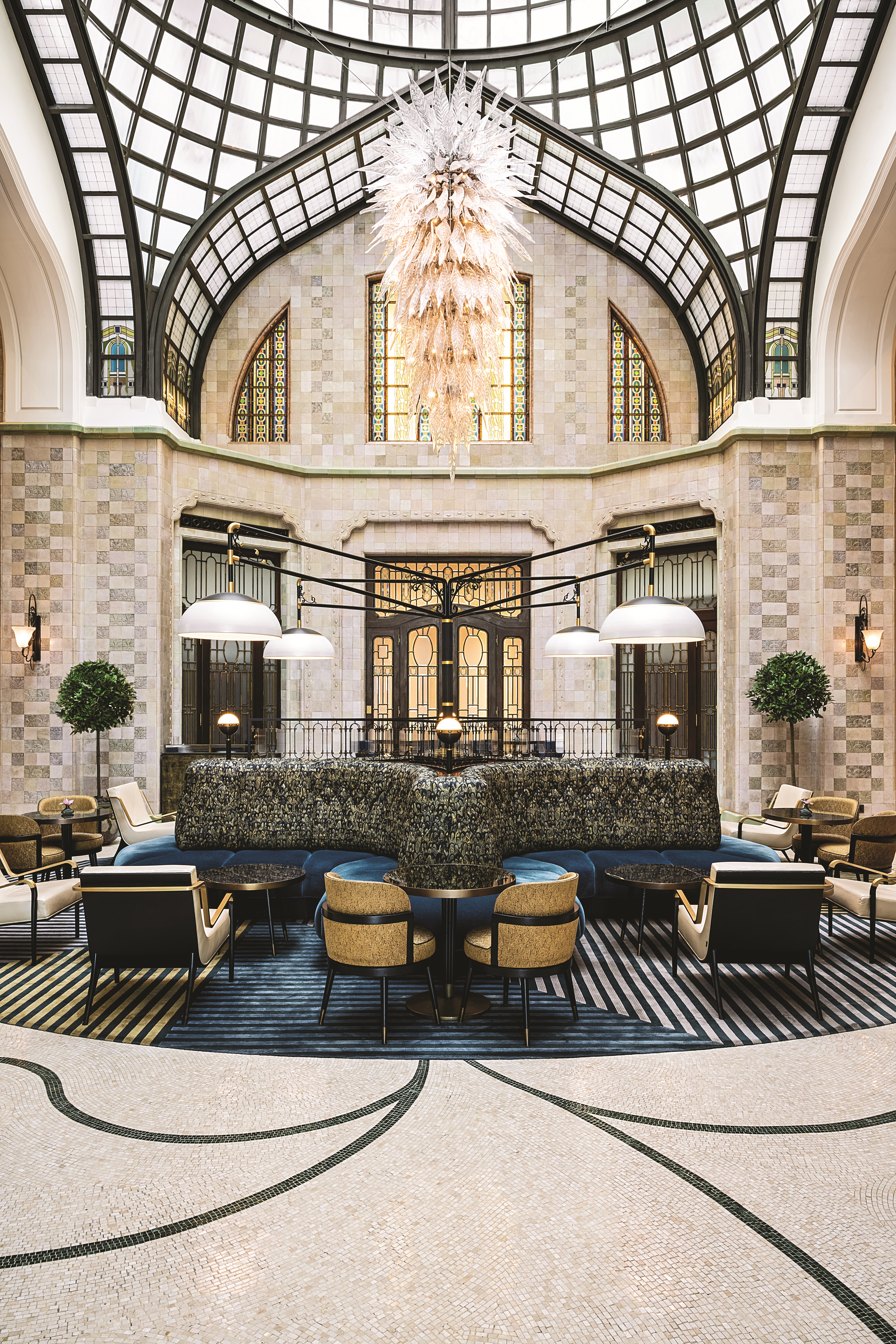 وعند دخول الردهة، يلفتك وجود ثريا رائعة تمثل عملاً فنياً وتعبيراً عن التزام الفندق بالفخامة. هذه الردهة المزينة بتفاصيل مذهلة هي أفضل مقدمة دافئة ومرحبة لتجربة ملكية تنتظر الزوار داخل الفندق. بالفعل، يتمتع الضيوف فور وصولهم بأجواء من الرقي، حيث تبرز التفاصيل الدقيقة مثل السلم الكبير والقبة الزجاجية الشهيرة جمال تاريخ بودابست الثقافي.