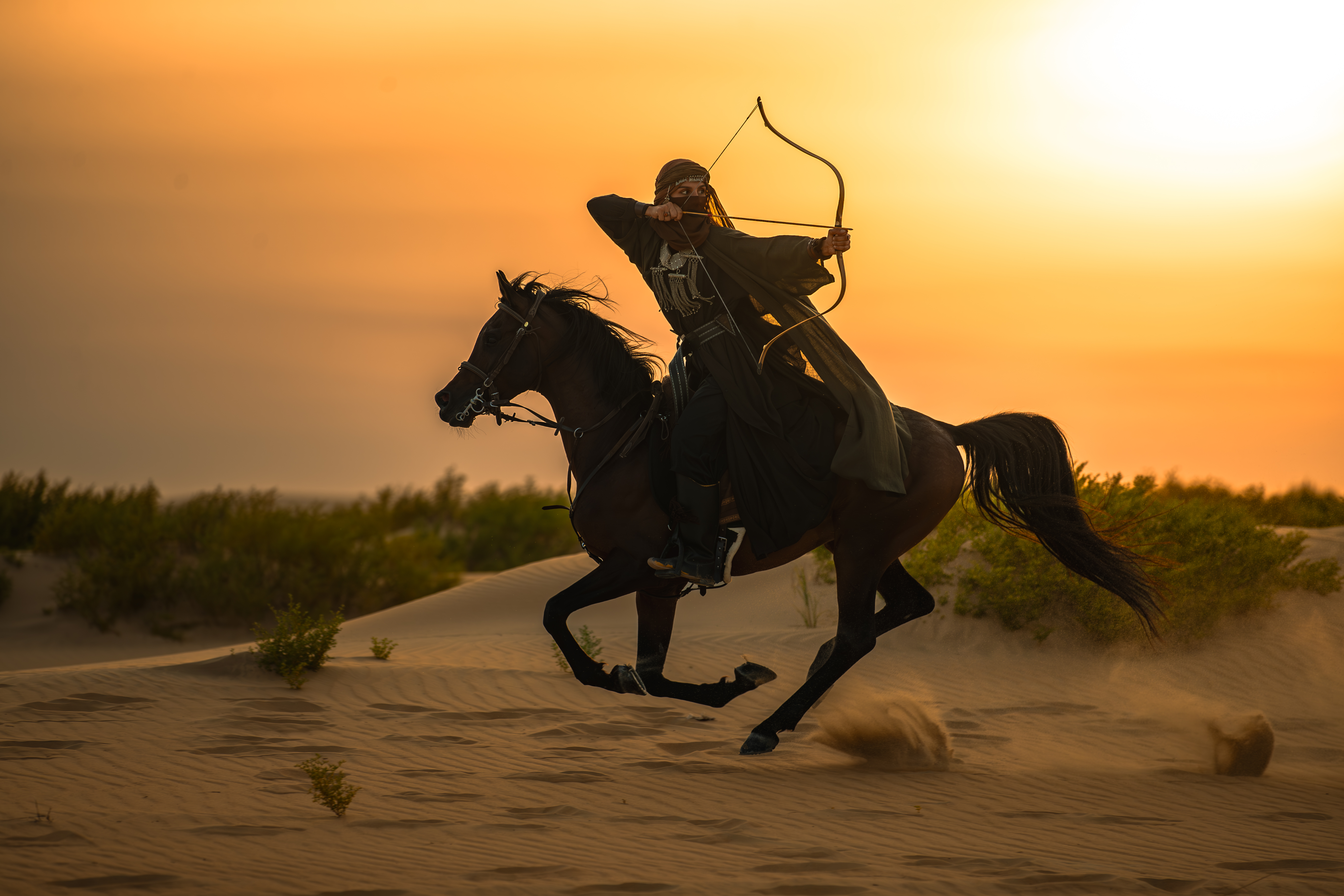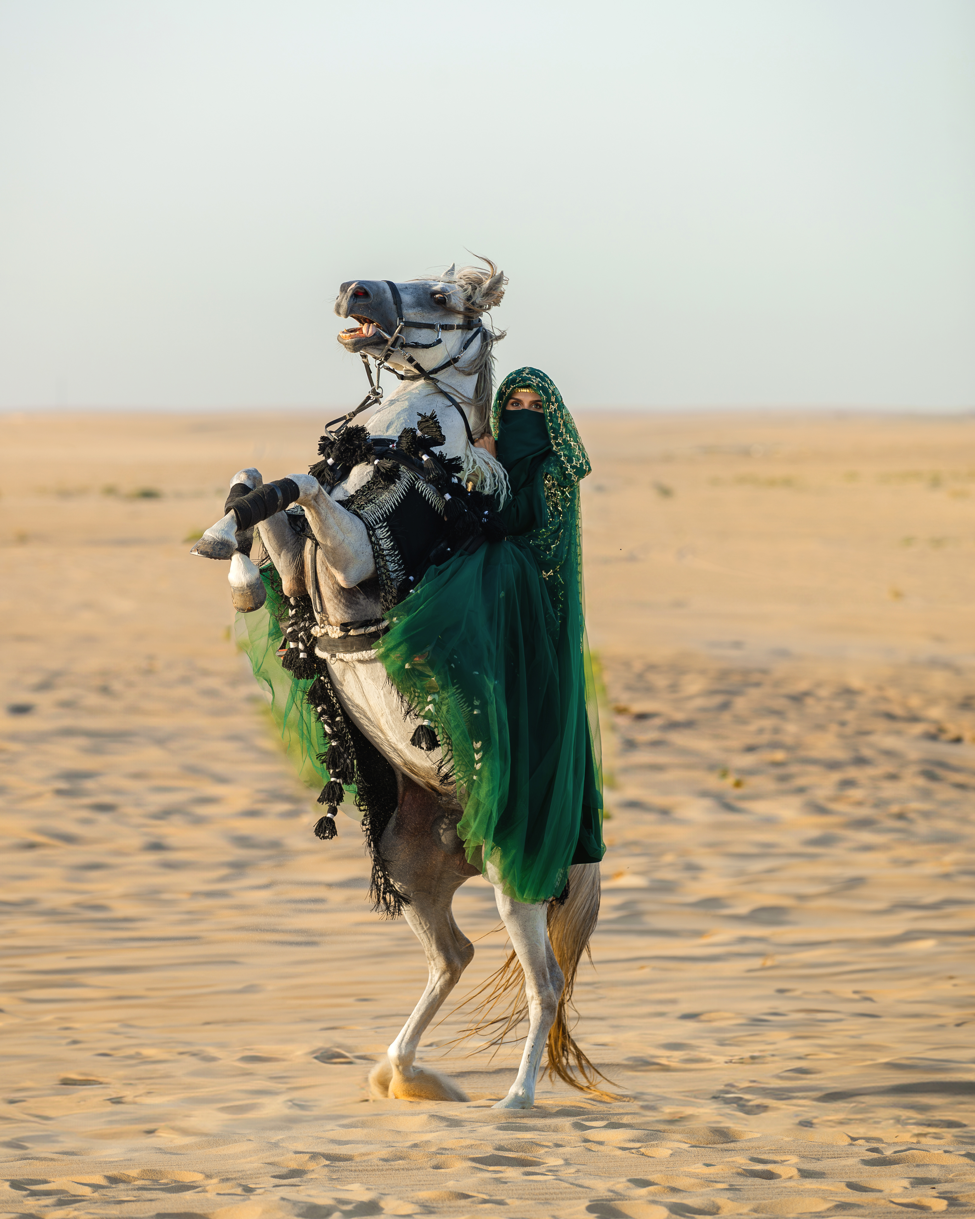 أنا فارسة سعودية ومدرّبة في المهارات القتالية مِن على الخيل، درست الإدارة المالية والاقتصاد، لكن شغفي الحقيقي كان دائماً بين الرياضات بكل أنواعها، والآن تأخذ الفروسية والمهارات القتالية الحيّز الأكبر من اهتماماتي. بدأ شغفي بالفروسية في مرحلة الطفولة، كان الخيل بالنسبة إليّ أكثر من مجرد حيوان، كان رمزاً للحرية والقوة. بدأت بركوب الخيل، وتطورت الرحلة تدريجاً إلى الفروسية والمهارات القتالية، الرماية من على ظهر الخيل والتقاط الأوتاد ومهارات السيف. سافرت بها إلى ماضينا وفهمت أن الفروسية ليست فقط مهارة، بل هوية وإرث نعتز به.