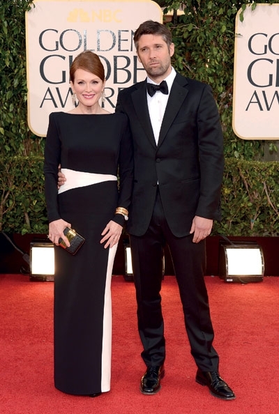 جوليان مور: أقراط من الذهب الأصفر مع الماس وخاتم بلاتينيوم مع حجر الزمرّد والماس، وساعة Serpenti الرائعة من مجموعة Bvlgari Heritage من عام 1967.