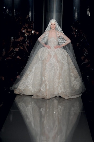 مجموعات الألوان راوحت بين الظلال الفاتحة للوردي والمرجاني والأخضر، لكن هذا لا يعني أن صعب لم يتطرق إلى اللونين الأحمر والأسود اللذين تم اعتمادهما تصاميم متنوعة. لا شك في أن ديتا فون تيس ستجد تصاميمها المفضلة هنا. اجتمع عدد كبير من محبي المصمم في الصف الأول وبينهم المغنية نانسي عجرم، وإليسا، والممثلة الفرنسية فيرجيني لودوايان، والممثلة الاسبانية باز فيغا. وكما هي الحال دوماً، جاء التصميم الأخير لإيلي صعب معقداً ولبّت هذه العروس كل التوقعات، لا بل أكثر. فقد تألقت العارضة في أكبر فستان عرس رأيناه مع تنورة منتفخة ومثبتة بأسلاك واختتمت بذلك عرضاً سحرياً.