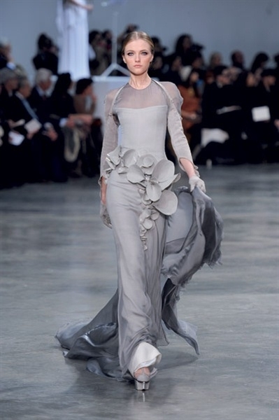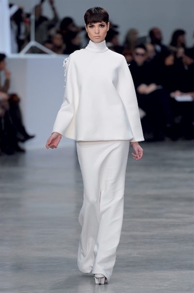 لم يبتعد ستيفان عن توقيعه الدرامي المتمثل في القصات المنحوتة على شكل ذيل السمكة والتي تتّسم بالأناقة في عالم الأزياء الراقية. أما في هذا الموسم فتميّز بشيء خاص إذ أضاف على طول المنصة عازفي كمان يرتدون رداء التوغا الروماني ويعزفون الموسيقى. وفي الصفوف الأمامية، بدت كيم كارداشيان في بذلة باللون الأسود والأبيض متوهجة لفرحها بحملها، وإلى جانبها العارضة الجميلة ياسمين لوبون والممثلة باز فيغا يتأملن التصاميم بإعجاب. طغى المزاج الإغريقي على هذه المجموعة، وقد عمل ستيفان على المزج بين هذا الطابع وإشاراته إلى التحفة الفنية المنحوتة المعروضة في متحف اللوفر تحت عنوان «نصر ساموثراس المجنّح» The Winged Victory of Samothrace، حسب ما قاله لوكالة فرانس برس في الكواليس. غالباً ما تجد في عروض دار ستيفان التفاني للشكل، وإن كان هناك هيكلية فهناك أيضاً إنسياب وأناقة ورقي. كانت المجموعة مخصّصة للونَين الأسود والأبيض، بالإضافة إلى ثوب واحد ذي ظلال رمادية وثوب أبيض ذي الكشاكش عند الخصر المزينة بجواهر الزمرّد الدقيقة.