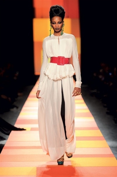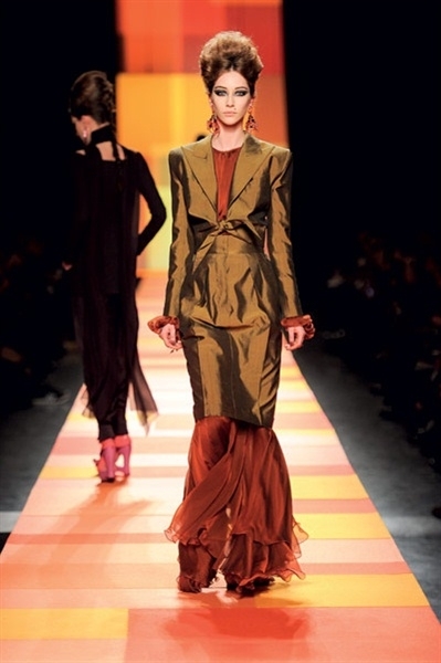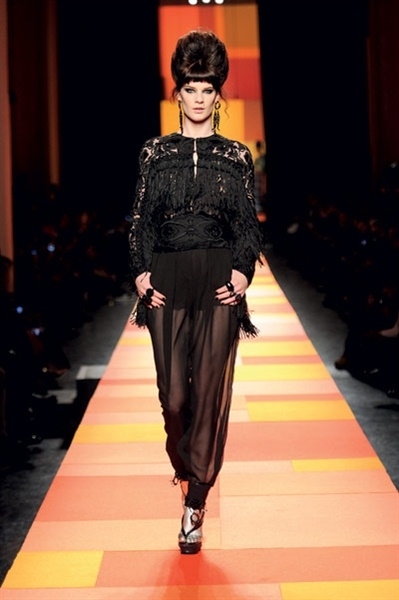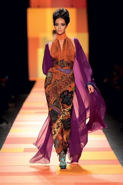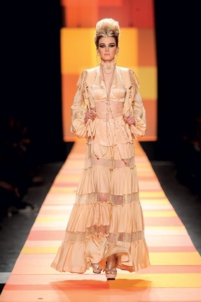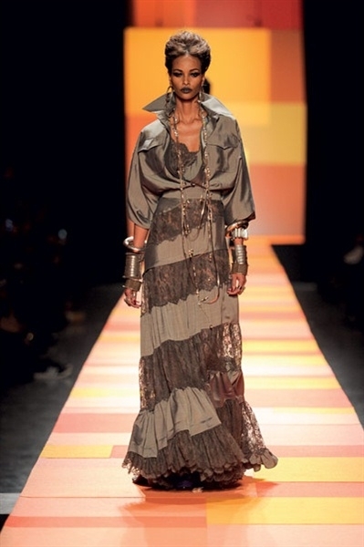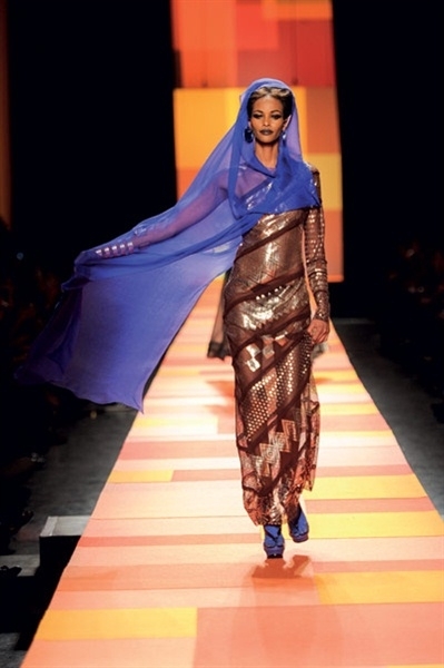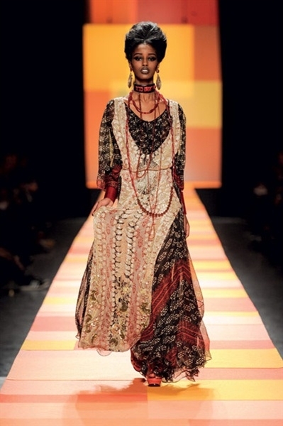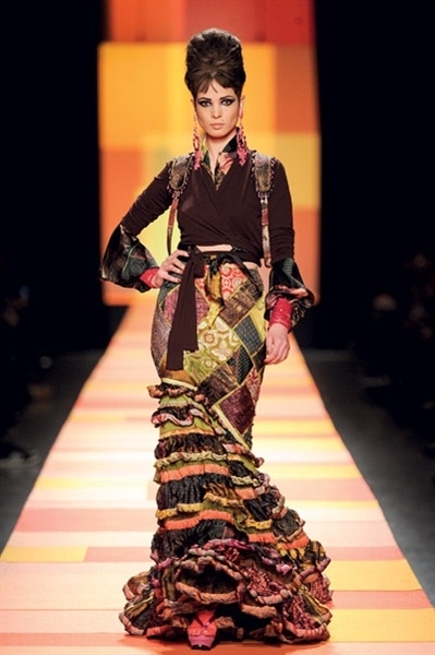 لطالما اعتدنا أن تنقلنا دار غوتييه في رحلة مفاجئة. وإذا بهذا الموسم يكون بمثابة تكريم للغجر الهنود. تألفت المجموعة من الشيفون في لوحات من ألوان التوابل مثل الزعفران، والكركم، والفلفل الحلو والهال. واحتوت على السراويل والتنانير الطويلة المتأرجحة بألوان الجواهر. وظهرت تصاميم القفطان في أشكال ضيقة أكثر متطابقة مع تصفيفات الشعر المرفوع عالياً والأقراط على شكل ثريا كبيرة. وعلى الرغم من أن المجموعة قد سيطرت على المكان ولم تكن لتصنّف في خانة الأزياء الراقية، إلا أن غوتييه لا ينفك يبعث الدهشة والمفاجأة كما هو الحال دائماً معه... فهو في نهاية العرض يتشارك مع الحضور حسّ الفكاهة والغرابة لديه. وإذا بالخاتمة تكون مع عرض ثوب زفاف تماماً كما في الروايات، تطلّ من تحت طياته أربع فتيات صغيرات يرتدين الملابس المرصّعة بالجواهر الملونة على أنغام الإيقاعات الآسيوية.