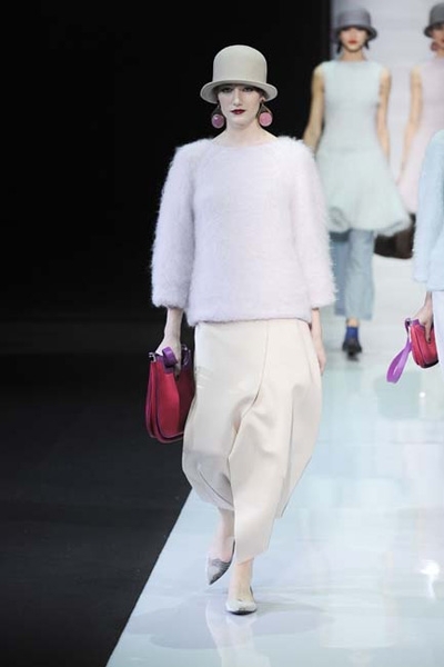 الخطوط في Emporio Armani بسيطة مزجها جورجيو أرماني بأكسسوارات تجعلها تبدو لعوبة، عصريّة مرحة. القصّات فيها أنوثة، وأحياناً هندسيّة. أمّا الألوان، فأتت بالبيج والكريم والزهريّ الخافت والألوان المعدنيّة.
