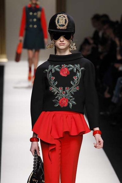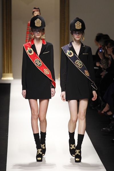 المجموعة تضمّ أزياء مستوحاة من اسكوتلندا بألوانها وهويّتها، وأزياء أخرى تذكّر بتلميذة المدرسة في اليابان، وبعضها بالفروسيّة. في موسكينو، ختام العرض كان مع مجموعة من الأزياء بلوني الأبيض والأسود.