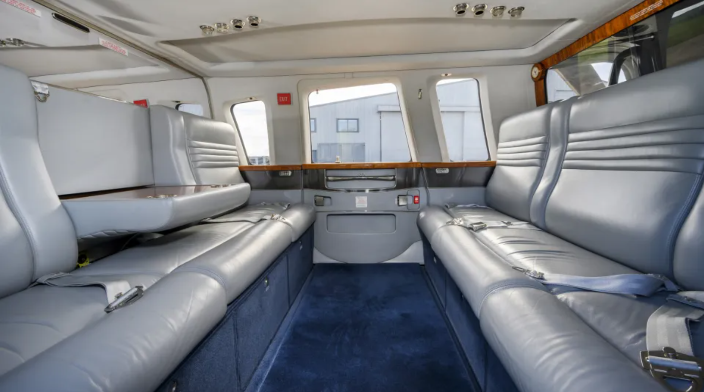 والمروحية المعروضة للبيع من طراز "سيكورسكي S-76C"، وتعود لعام 2009، وقد خدمت العائلة المالكة لأكثر من 15 عاماً. وتتميز بتصميم داخلي فاخر يشمل مقاعد جلدية رمادية، وسجادة زرقاء، وساعة خشبية، ونوافذ مظلّلة، ورفوفاً للمجلات.