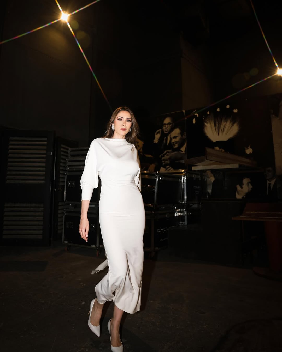الفساتين الطويلة أصبحت جزءاً أساسياً من خزانة دانييلا رحمة بعد الزواج. من القصّات الانسيابية الناعمة إلى التصاميم الجريئة بقصّات هندسية أو فتحات مدروسة، تختار دانييلا دائماً ما يُبرز جمالها بطريقة راقية. هذا النوع من الفساتين يمنحها طابعاً ملكياً، خاصة حين تختاره بألوان حيادية أو أقمشة لامعة.