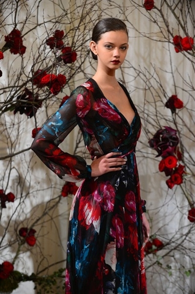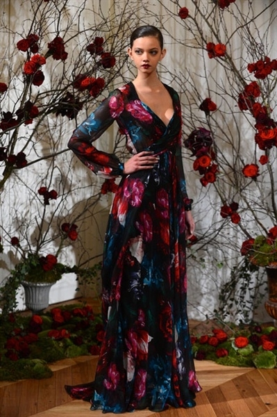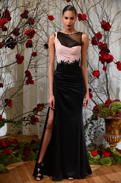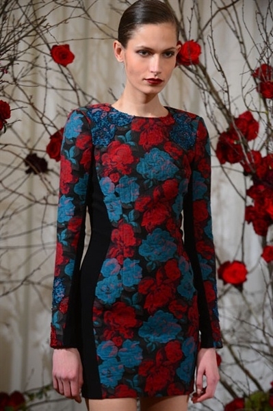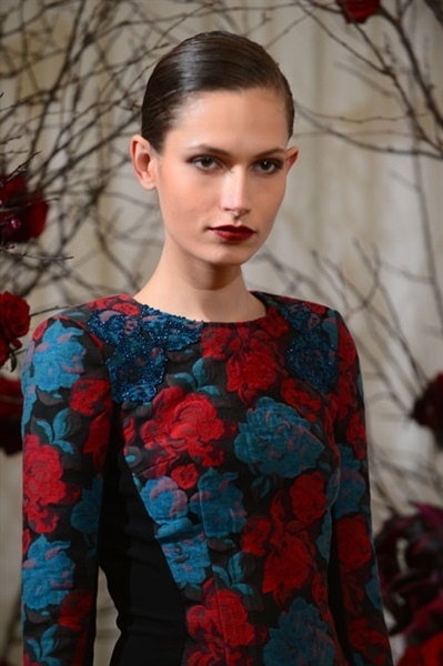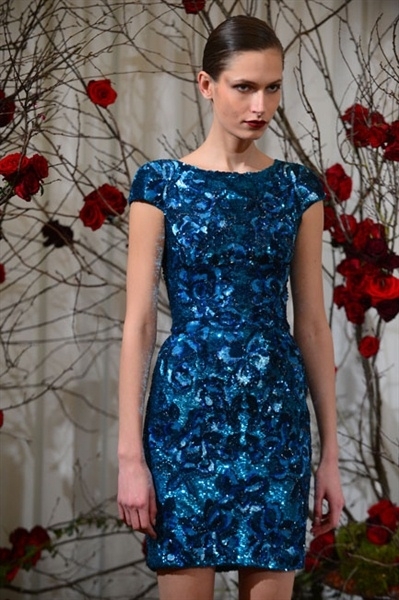 الفساتين أنيقة من الجلد أو الدانتيل بقصّات ضيّقة وقصيرة، مع ثنيات تحت الخصر. والأقمشة مطبّعة بالورود الكبيرة أو مطرّزة بالخرز، أضاف إليها الدانتيل أحياناً، وتركها شفّافة أحياناً أخرى.