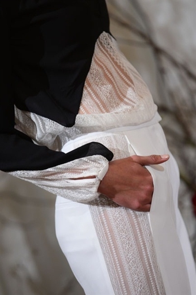 كما أضاف الدانتيل الناعم إلى القمصان والسراويل باللون الأبيض. وللسهرة طبعاً فساتين طويلة كلّها مغطّاة بالخرز.