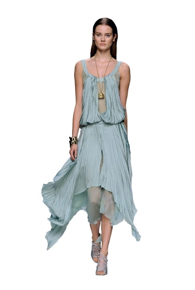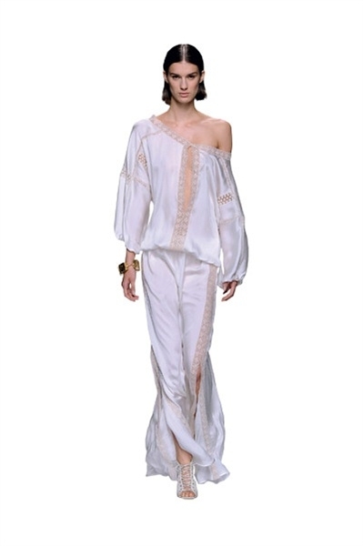 فساتين طويلة مع ثنيات فيها القليل من اللماعية، وطبعاً العرض لا يخلو من الورود والدانتيل وألوان الباستيل المعروفة بها المصمّمة آنّا موليناري!