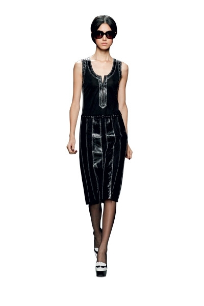 الفساتين ضيّقة أو مزمومة عند الخصر، محدّدة بحزام رفيع. في المجموعة أيضاً تصاميم من الجلد الناعم. الطلّة عموماً أتت لسيّدة راقية وناعمة...