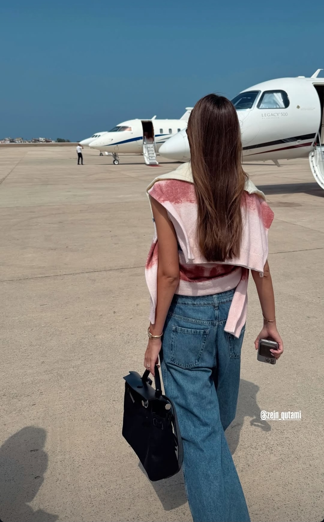 وشارك سيليو متابعيه عبر خاصية الستوريز بصورة لزوجته وهي تسير باتجاه الطائرة الخاصة بإطلالة كاجوال أنيقة، عبارة عن بنطال دنيم واسع القدمين، مع توب باللون الزهري بتدرّجات ناعمة، وحملت بيدها حقيبة سوداء كبيرة الحجم تناسب أجواء السفر.