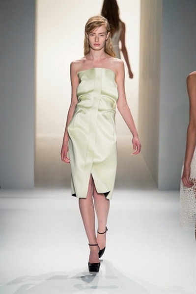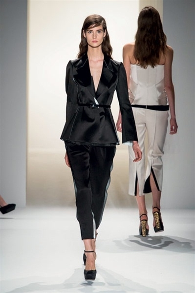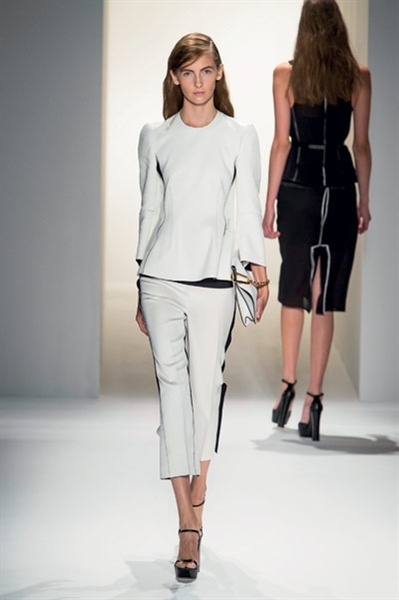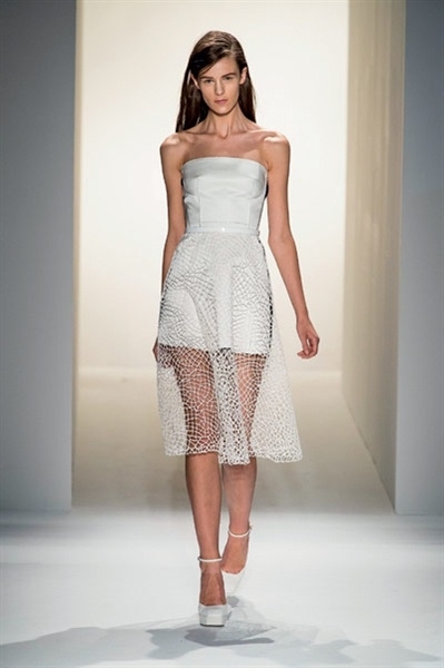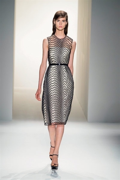 ركّز المصمّم فرانسيسكو كوستا في هذه المجموعة على الصدر بقصّات بارزة، وفتحات عند الكتفين. كما قدّم أزياء من الشبك الشفّاف مع قماش أبيض تحته، وأيضاً فساتين من الجلد الأسود المطبّع. المرأة في Calvin Klein Collection هذا الصيف جذّابة، ولكنّها بالوقت نفسه تتمتع بمعدّل عال من الذكاء.