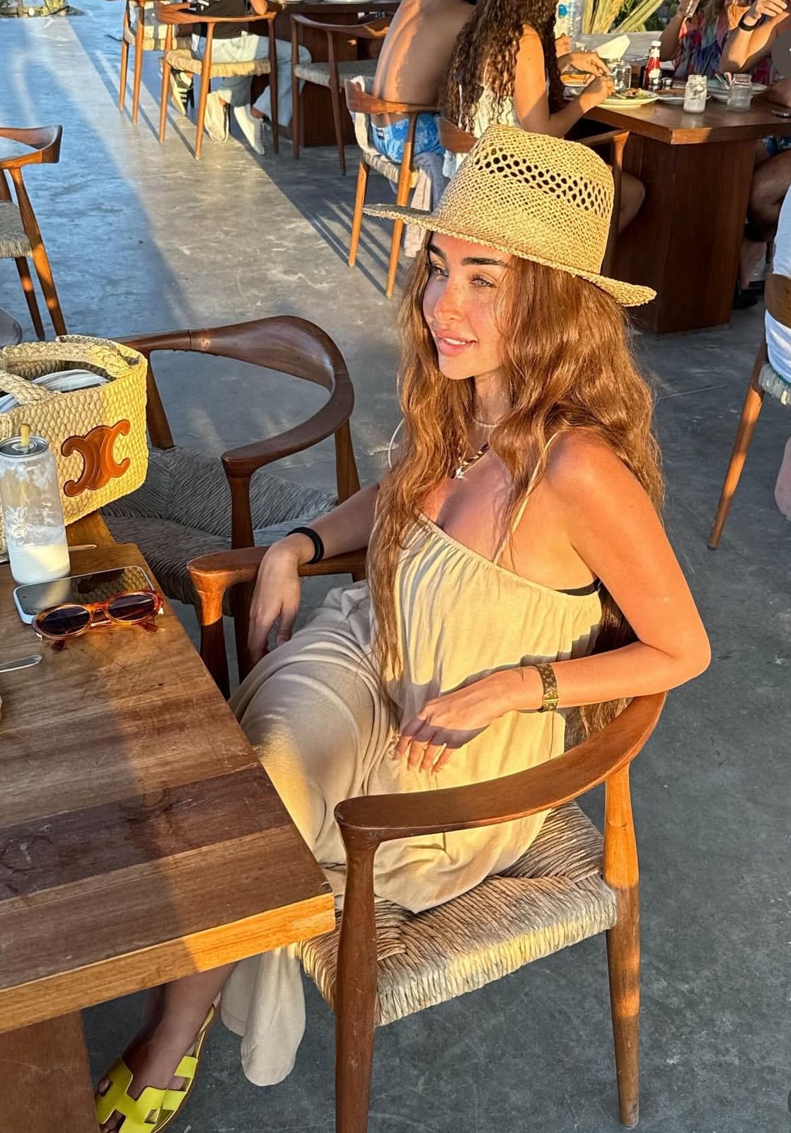 إحدى أكثر الإطلالات الطبيعية التي ظهرت بها هذا الصيف، الفستان القطني البيج الذي نسّقته مع قبّعة قش كلاسيكية. اللون الترابي انسجم تماماً مع أجواء الصيف وأضفى طابعاً هادئاً ومريحاً. هذا اللوك مثالي للنزهات الريفية أو لرحلات البحر الممتعة، حيث تبرز الأناقة الهادئة التي لا تحتاج إلى أي مبالغة.