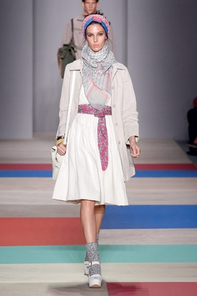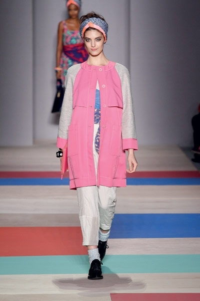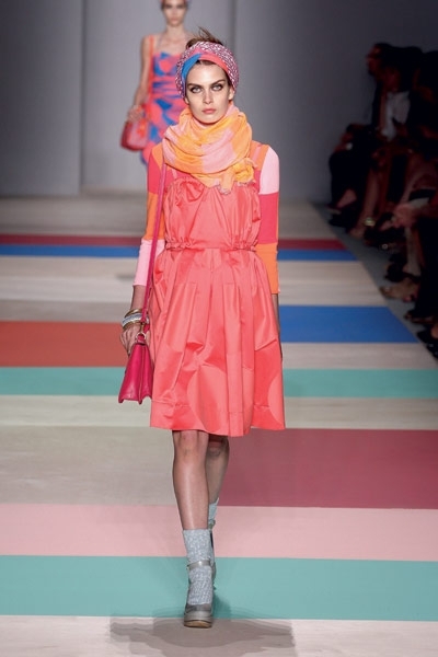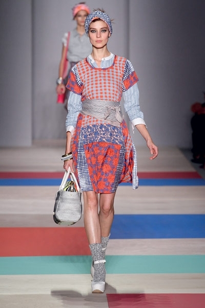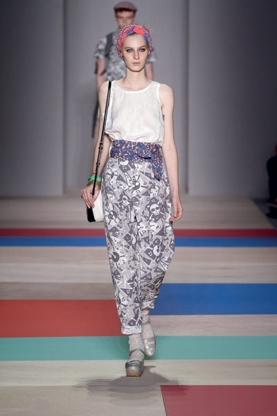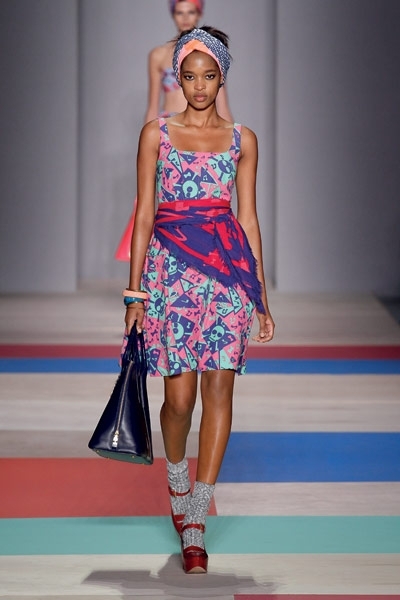 المجموعة كعادتها شابّة وملوّنة تستعيد ذكريات الثمانينات، مزجت في بعضها النقوش المختلفة. الأكسسوار الأهمّ في الجموعة كان المنديل العريض الذي ربطته العارضات عند العنق أو حول الخصر أو على الرأس.