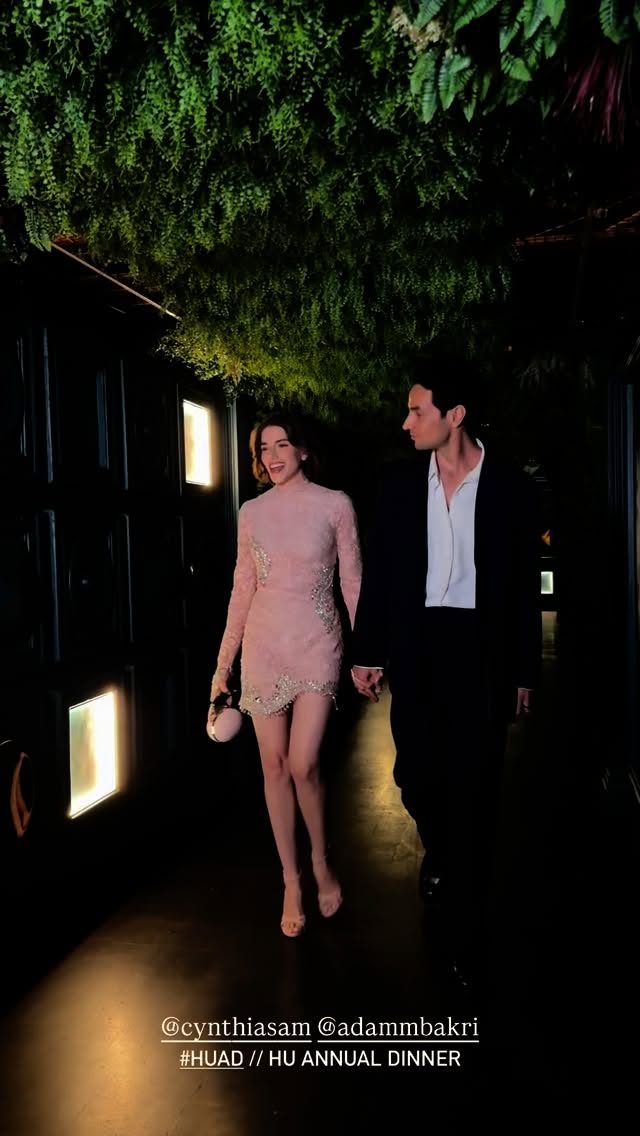 ظهرت سينتيا صموئيل بفستان قصير ضيّق باللون الزهري الباستيلي، مطرّز بالفضي عند الحواف، وأكمامه الطويلة أضفت لمسة من الرقي على التصميم. الإطلالة بدت أنثوية بامتياز، مع لمسة رومانسية بفضل اللون والتفاصيل الدقيقة.