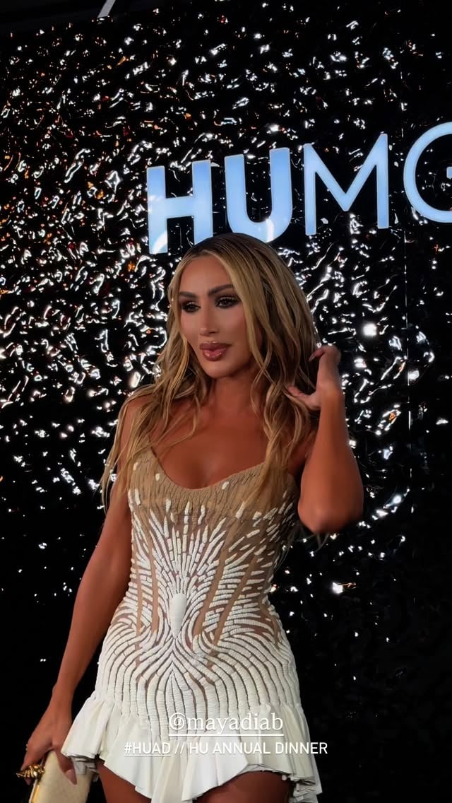 كعادتها في اختيار تصاميم خارجة عن المألوف، لفتت مايا دياب الأنظار بفستان قصير جمع بين اللونين البيج والأبيض. تميّز التصميم بقصّته الـStructured ذات الطابع الهندسي، ما منح الإطلالة طابعًا عصريًا ومتمردًا، يجمع بين الحدة والأنوثة.