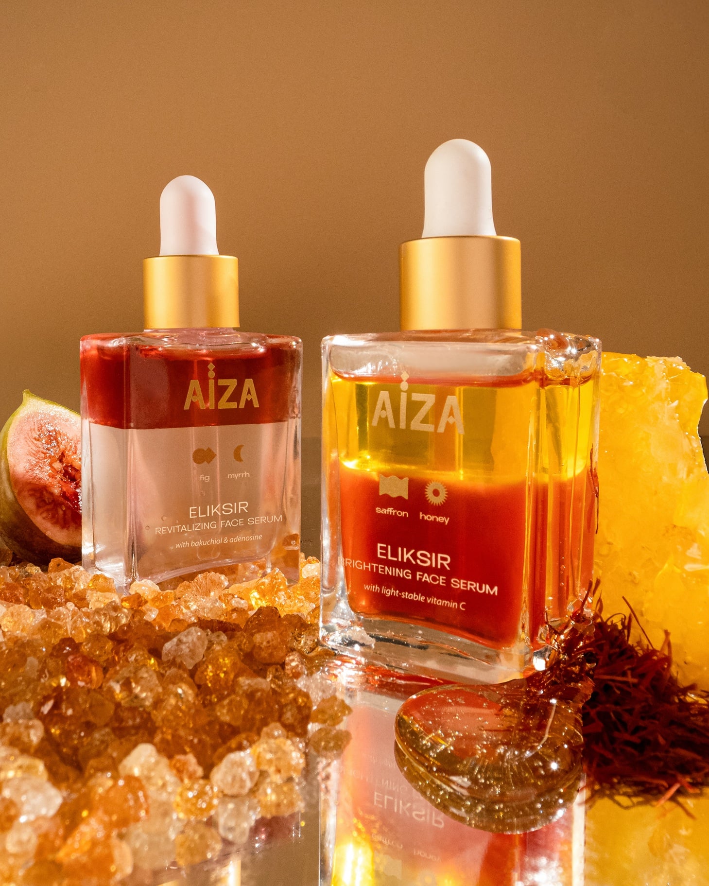 تكمن رسالة AÏZA في إيصال المكوّنات والتقاليد العربية العريقة إلى العالمية. لذا، حرصت على صناعة منتجاتها بعناية في أهمّ المختبرات العالمية بناءً على أبحاث علمية معمّقة، لتقدّم لكِ تجربة حسّية مميزة ونتائج ملموسة. ابتكاراتها هي رسالة حبّ إلى المنطقة العربية بأسرها، إذ تجمع أفضل مكوّناتها الطبيعية، كالتمر واللّبان وحبّة البركة والسدر وغيرها الكثير، مع مواد نشطة لتلبية كل احتياجات بشرتك وشعرك. تكرّم التقاليد وتحتفي بالحاضر، محوّلةً روتينك الجمالي إلى طقوس مفعمة بالأحاسيس ستعشقينها بالتأكيد.