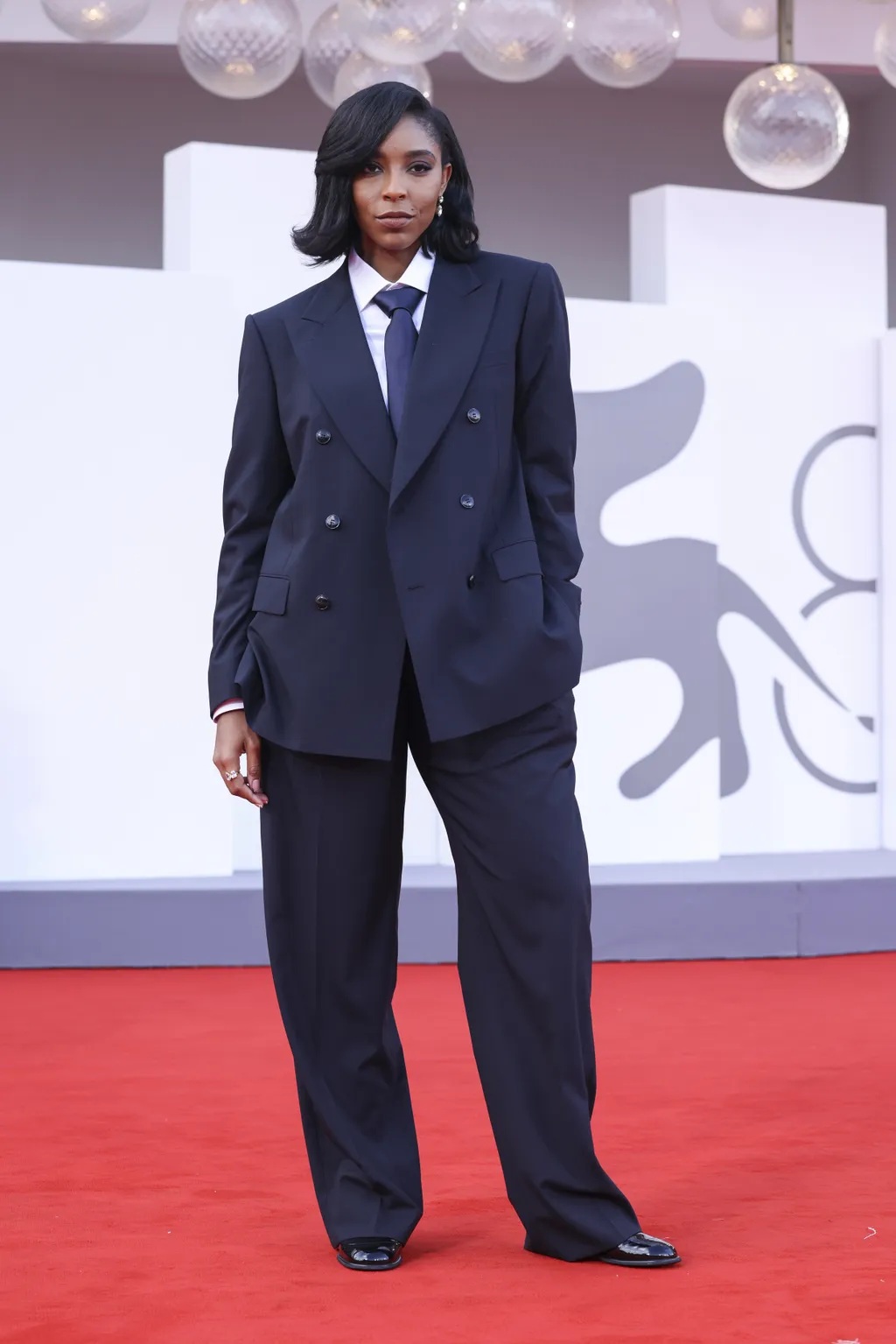 ابتعدت النجمة جيسيكا ويليامز عن النمط التقليدي للفساتين، واختارت بدلة ذكورية واسعة من جورجيو أرماني لحضور عرض Frankenstein في 30 آب/أغسطس. أكملت الإطلالة بقميص أبيض وربطة عنق زرقاء، مما منحها طابع "مديرة تنفيذية" قوياً، وكسر روتين السجادة الحمراء بأناقة لافتة.