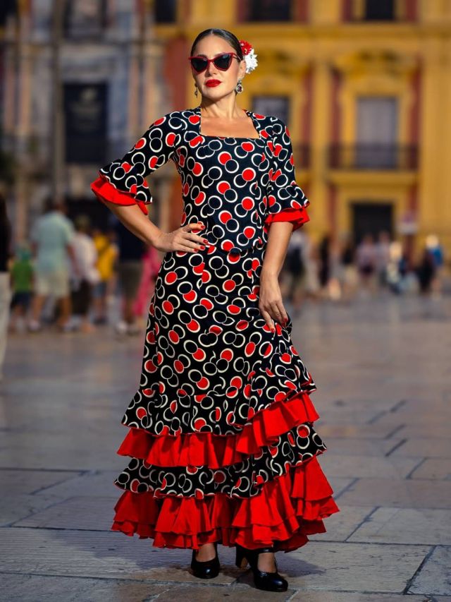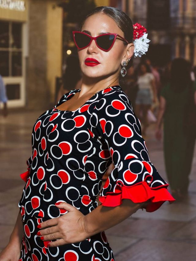 ديما قندلفت تتألق في شوارع اشبيلية بفستان بكشاكش حمراء