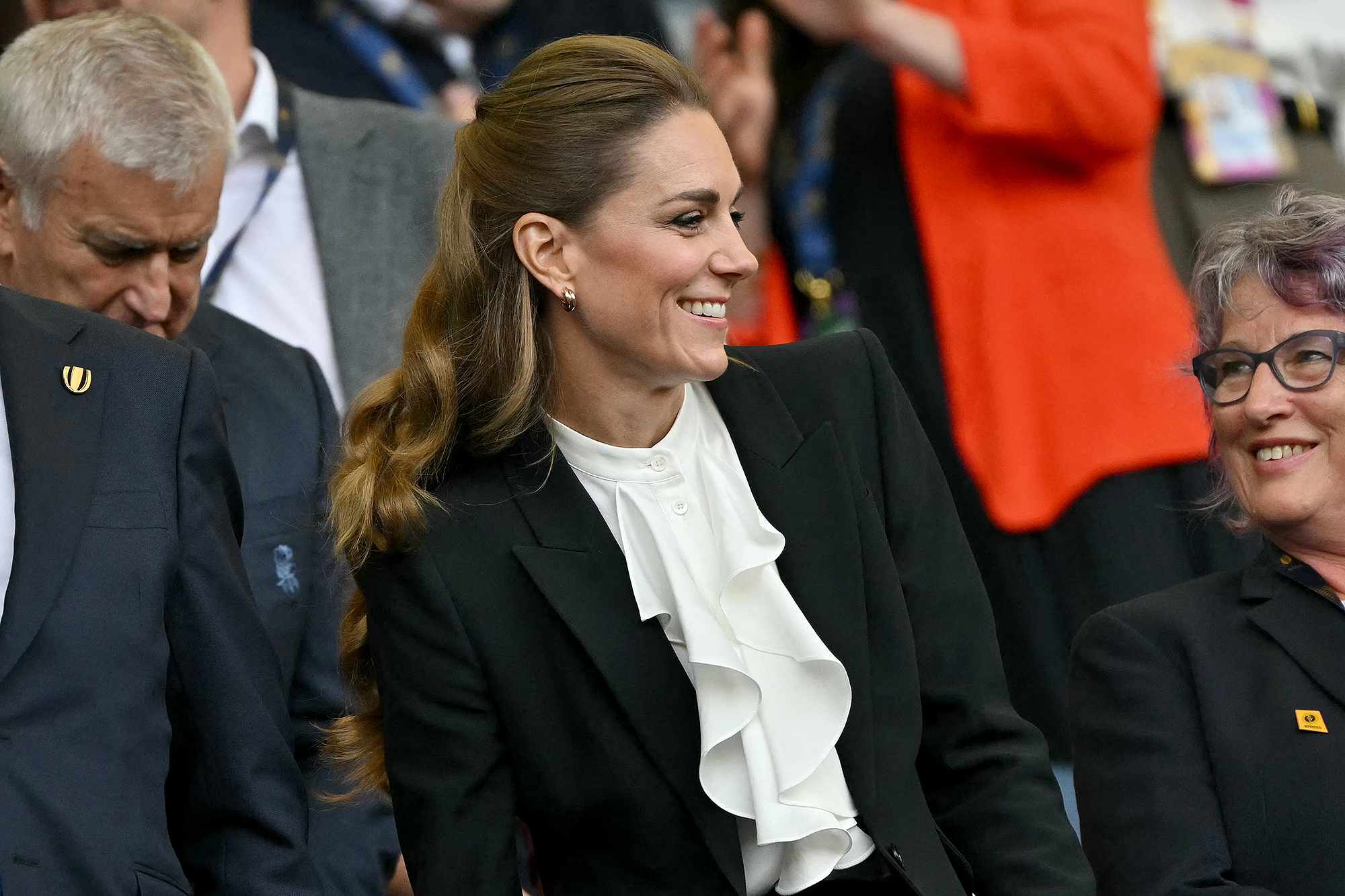 وصفّفت كيت شعرها في المباراة، بتسريحة نصف مرفوعة فضفاضة.