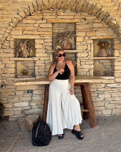 في واحدة من أكثر إطلالاتها جرأةً، ظهرت أسما بتنسيق الكروب توب مع البايكر شورت، وهو لوك يجمع بين الطابع الرياضي والستايل الستريت العصري. هذا الستايل يبرز شخصية منطلقة وعفوية، ويعكس أسلوب الحياة السريع للمرأة العصرية التي لا تخاف من لفت الأنظار.
