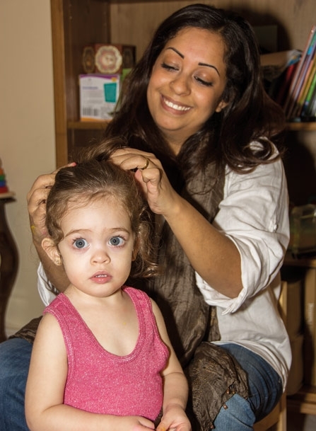 وعندما يخرج في الساعة السادسة والربع، ألتفت إلى ابنتي، فأحضر لها الحليب، وأغيَر ملابسها، ليبدأ يومي معها. تتعلم مريم اليوم أن تمسك الفرشاة وتنظف أسنانها، أجد صعوبة في ذلك، لكننا نستمع بهذا النشاط الصباحي.
