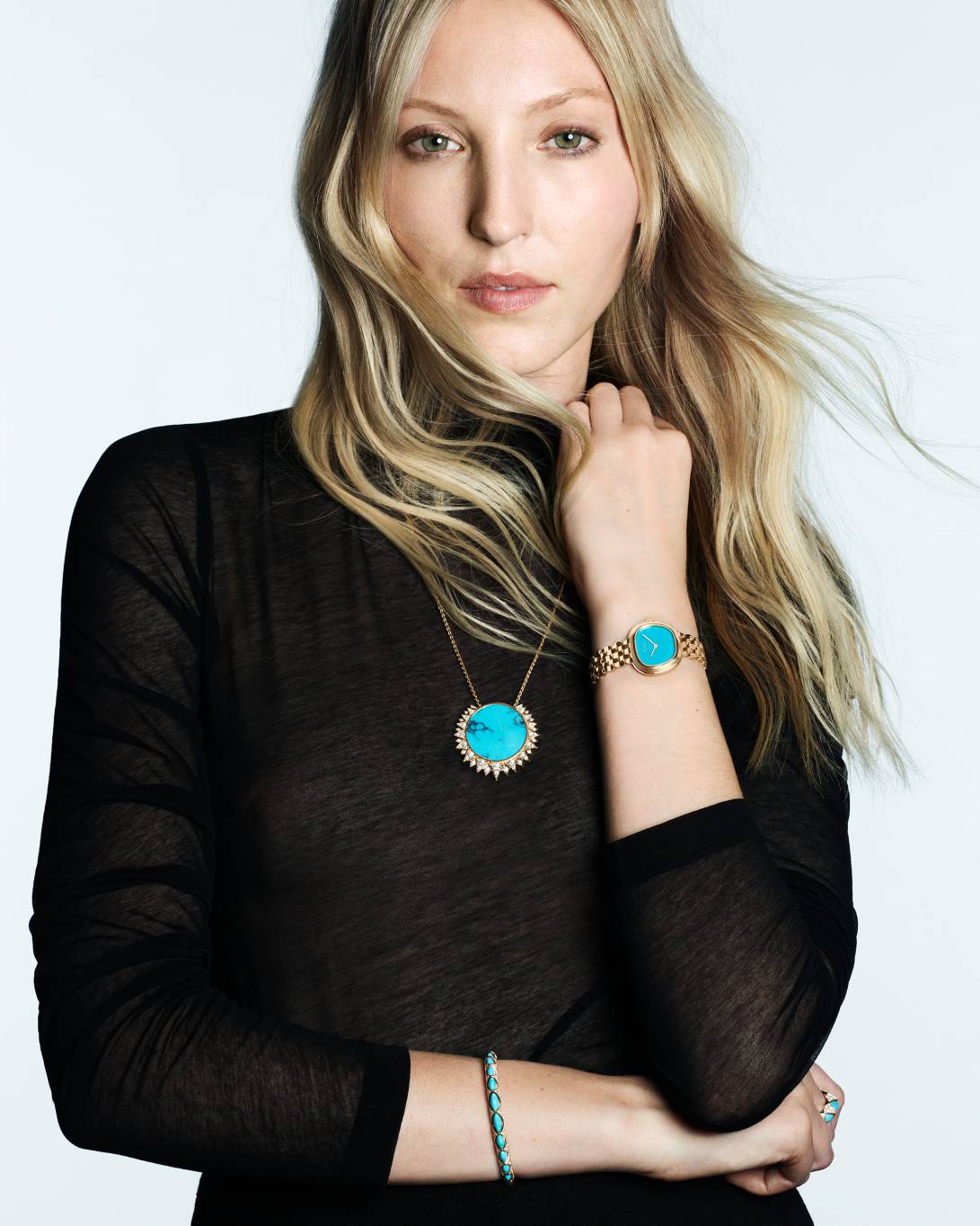 تجدّد "بياجيه" اليوم عشقها للفيروز فتبعث إرثه الغنيّ وسحره الأبدي والطبيعي الذي تمّ إطلاقه في معرض Sixtie في أحدث ابتكاراتها. وتشهد مجموعة "سيكستي"Sixtie التي تمّ إطلاقها في معرض Watches and Wonder على إتقان الدار للأشكال والأحجام الذي يتجلّى من خلال شكلٍ تصميمي جديد وجريء. يأتي ميناء الساعة الرباعي والترابيزي مزيّناً بالإشعاع الأزرق للفيروز المشرق ومن دون مؤشرات، وهو يكرّم مجموعة القرن الحادي والعشرين السبّاقة من "بياجيه"، والتي تعود إلى العام 1969. وكان المصمّم جان-كلود غيت قد أدار فريق الدار الإبداعي لمزج الحدود بين صناعة الساعات والموضة، فأعادوا تصميم ساعات كأشكال معبّرة تتضمّن ساعات معصم عريضة ومخرّمة وعقوداً طويلة swinging sautoirs.