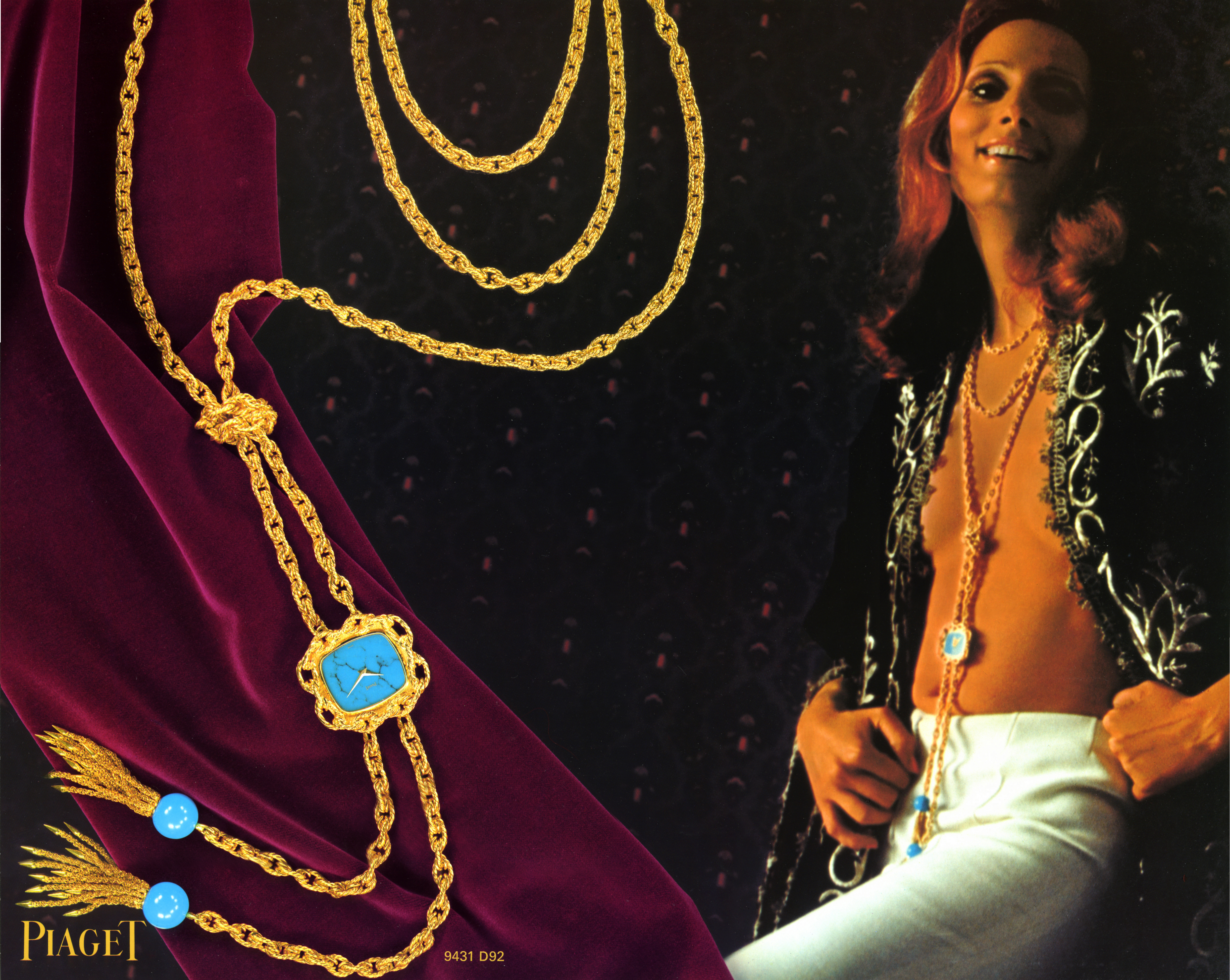 يستمرّ إرث "بياجيه" في مجال صناعة الساعات السبّاقة وإتقان اللون في مجموعة للعقود الطويلة Swinging Sautoir مستوحاة من تصاميم مرسومة مباشرةً بأيدي مصمّمي "بياجيه" على صفحات مجلات للموضة. تعبّر هذه الساعة المتدلّية على عقد طويل ذي لون فيروزي، وذات ميناء رباعي برونق الحقبة غير الرسمي مع إطار متدلٍّ من الذهب المجدول يدوياً والمرصّع بالماس يذكّر بأطُر الميناء الشبيهة بالتموّجات اللطيفة على سطح الماء. وتعزّز الحركة الحرّة لشرّابة الماسات والذهب العاكسة للضوء ديناميكيّة هذه القطعة.