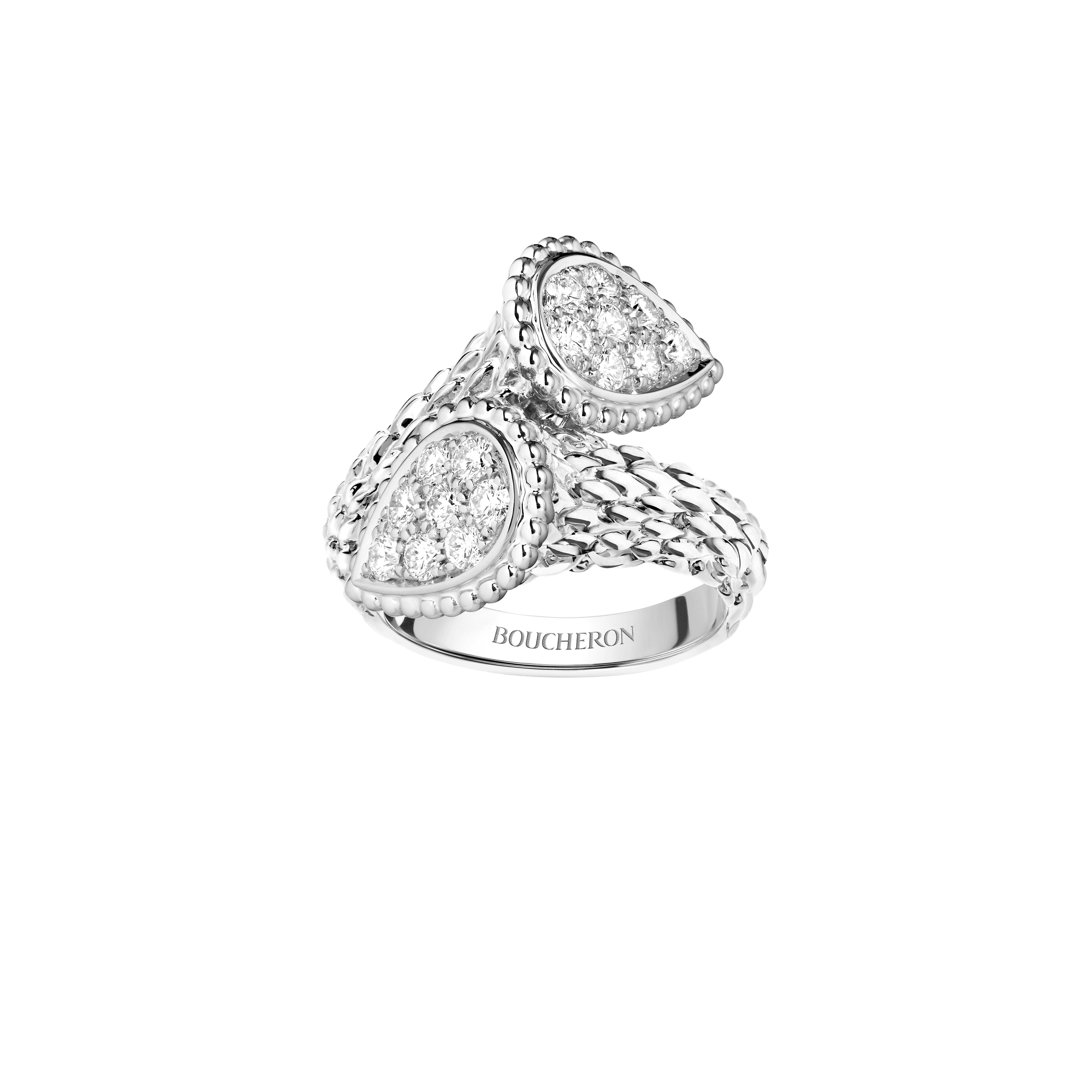 وبعقد Serpent Bohème متعدد العناصر مرصّع بالماس على الذهب الأبيض، وخاتم Joy مرصّع بالروبلايت والماس على الذهب الأبيض، بالإضافة إلى خاتم Torque مرصّع بالماس والكريستال الصخري على الذهب الأبيض.