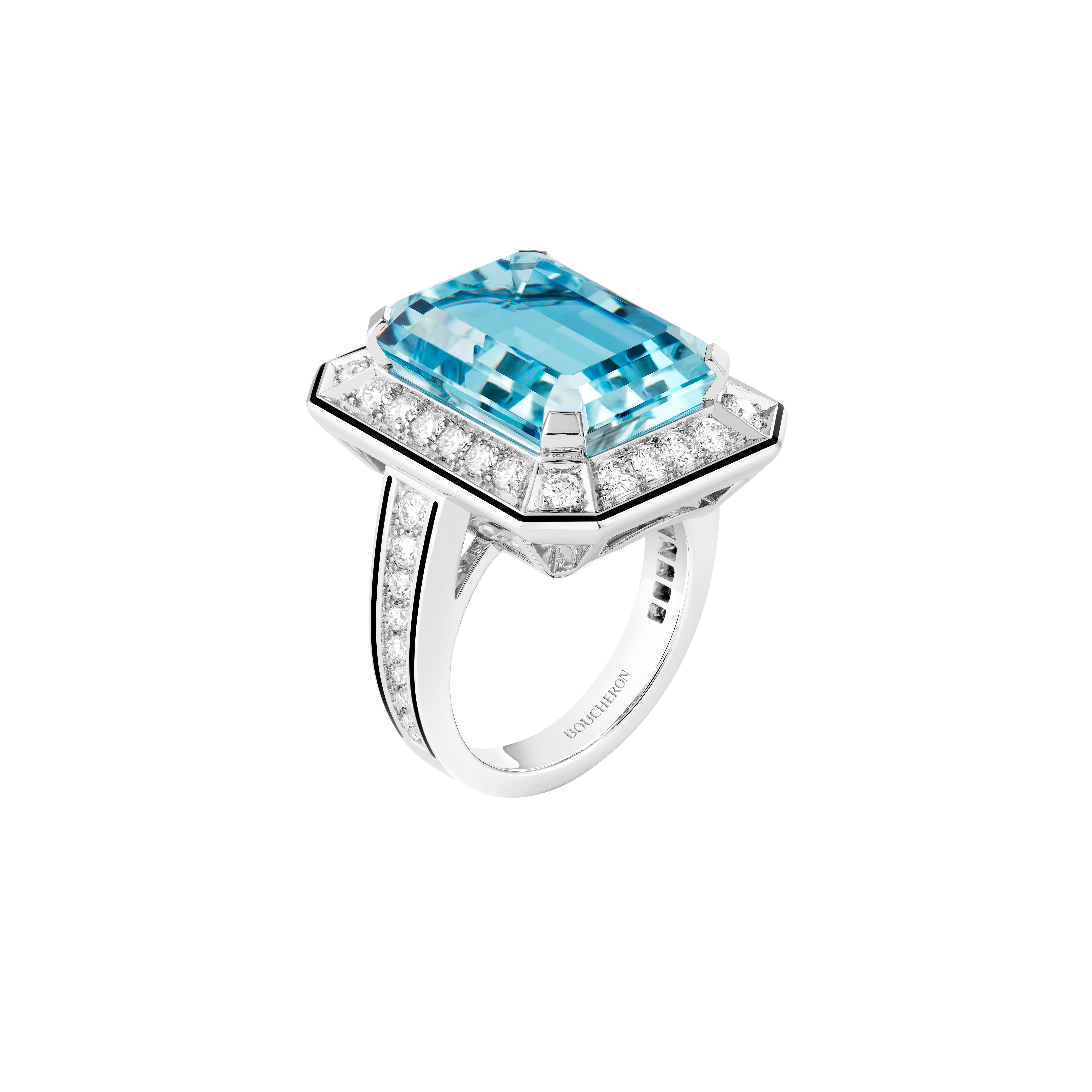 بالإضافة إلى خاتم Vendôme Liseré سوليتير مرصّع بماسة بقطع الزمرد وزنها قيراط واحد، وماسات مستديرة على الذهب الأبيض مع طلاء المينا الأسود، إلى جانب خاتم Serpent Bohème toi & moi مرصّع بالماس، على الذهب الأبيض.