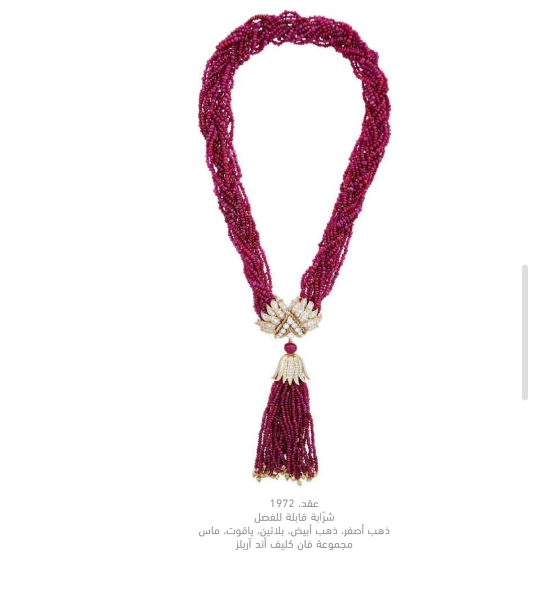 يتميز العقد المشغول من خرز الياقوت والذي ابتكرته الدار في العام 1972 بشرّابة قابلة للفصل في وسطها زخرفة نار مستوحاة من الثقافة الهندية، التي لطالما شكّلت مصدر إلهام للدار بعد الرحلات العديدة التي قامت بها عائلة "آربلز" بدءاً من أواخر الأربعينيات من القرن العشرين.