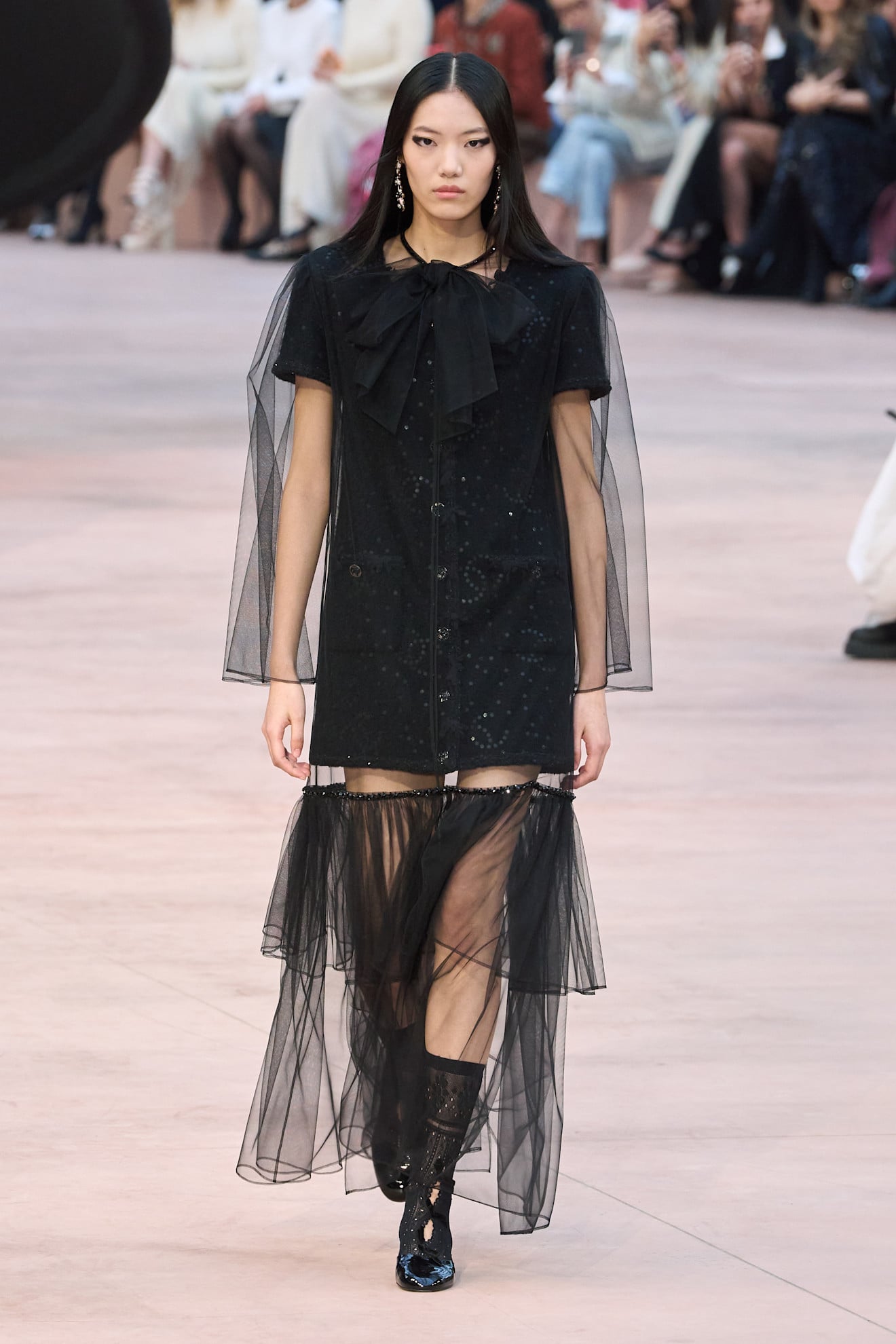 بدلاً من الانقلاب الجذري في الأسلوب، شانيل تُكرّس لمعرفتها التاريخية وتُظهر قدرتها على التطور من دون فقدان الجذور. الشيفون هنا وسيلة لإعادة تأكيد حسّ الدار الرومانسي، التألق، التداخل بين الماضي والحاضر. الجمهور يلمس أن "شانيل" لا تنسى شعارها بل تُعيد تفسيره.