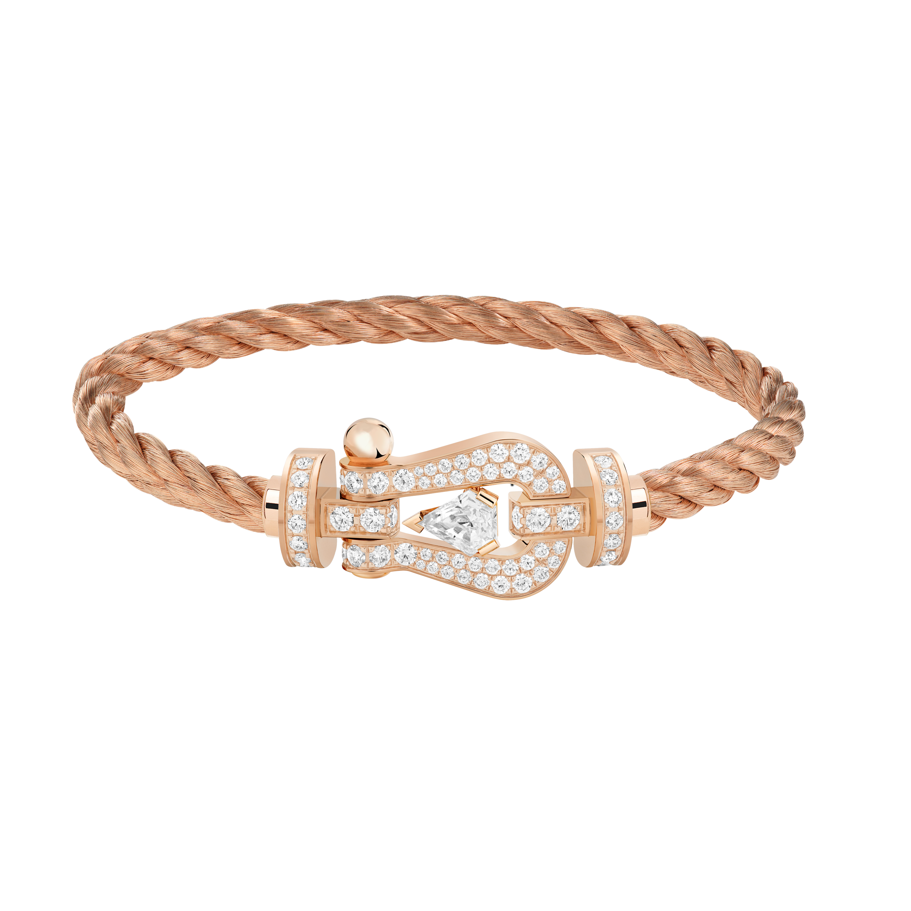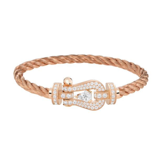 يأتي سوار Force 10 Hero Cut ليعيد تعريف الأناقة العصرية بلمسة فريدة، من خلال مشبكه القابل للتبديل والمزيّن بماسة FRED Hero Cut بوزن 0.5 قيراط، متوافرة بخيارات من الذهب الوردي أو الأبيض، مما يمنح القطعة طابعاً شخصياً وأنيقاً في آنٍ واحد.