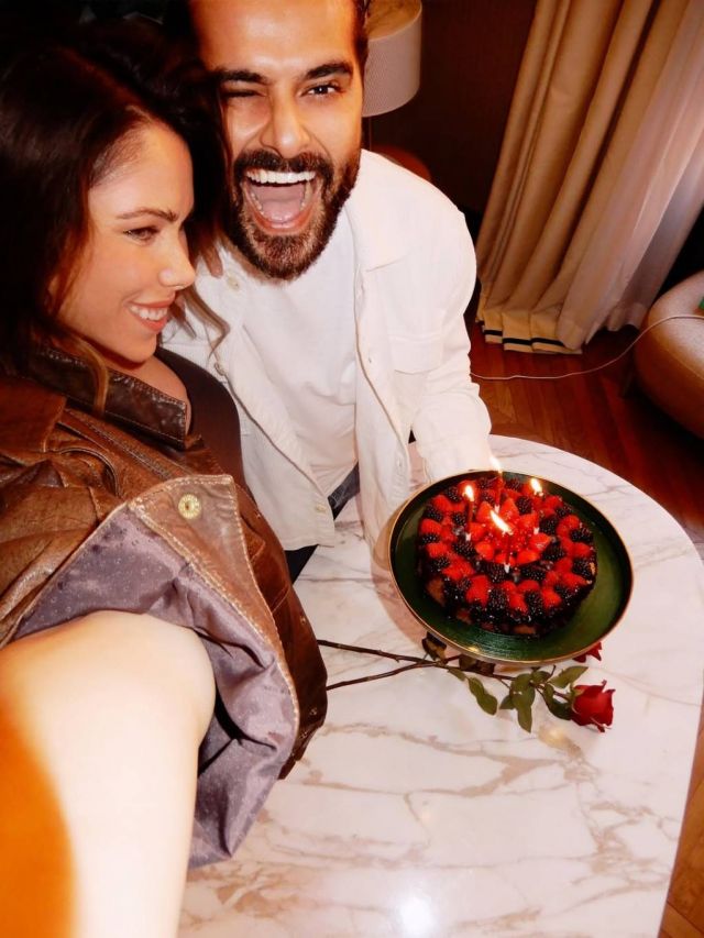 وشاركت النجمة اللبنانية متابعيها على انستغرام بمجموعة من الصور العفوية التي تجمعها بزوجها في غرفة الفندق، وحضرت له قالب حلوى بسيط مزين بالشموع والفواكه، وزينت الطاولة بالورود الحمراء وكانت الأجواء رومانسية دافئة، مليئة بالحب والاهتمام والتفاعل بين الثنائي الذي ينتظر مولودهما الأول.