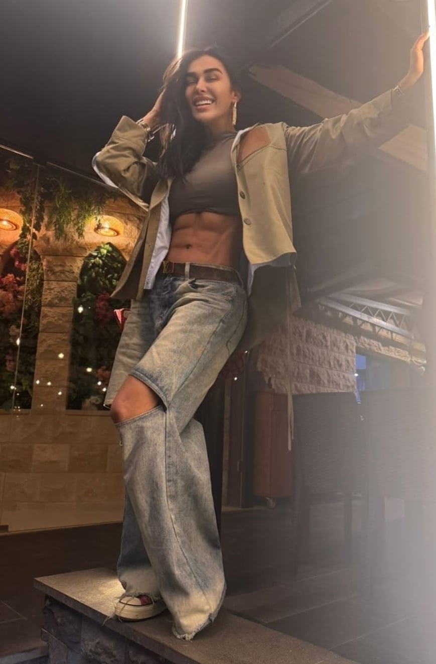 وتحرص نادين على استعراض عضلات معدتها من خلال الكشف عن بطنها بالتوب القصيرة التي تظهر بوضوح مجهودها للوصول للشكل الرياضي والصحي الذي تريده، وهو ما يتفاعل معه الجمهور بشكل واسع ويدفع أغلبهم للظن بأن الصور مرسومة عبر الفوتوشوب، وهذا ما تصرّ نادين في كل مرة على نفيه.