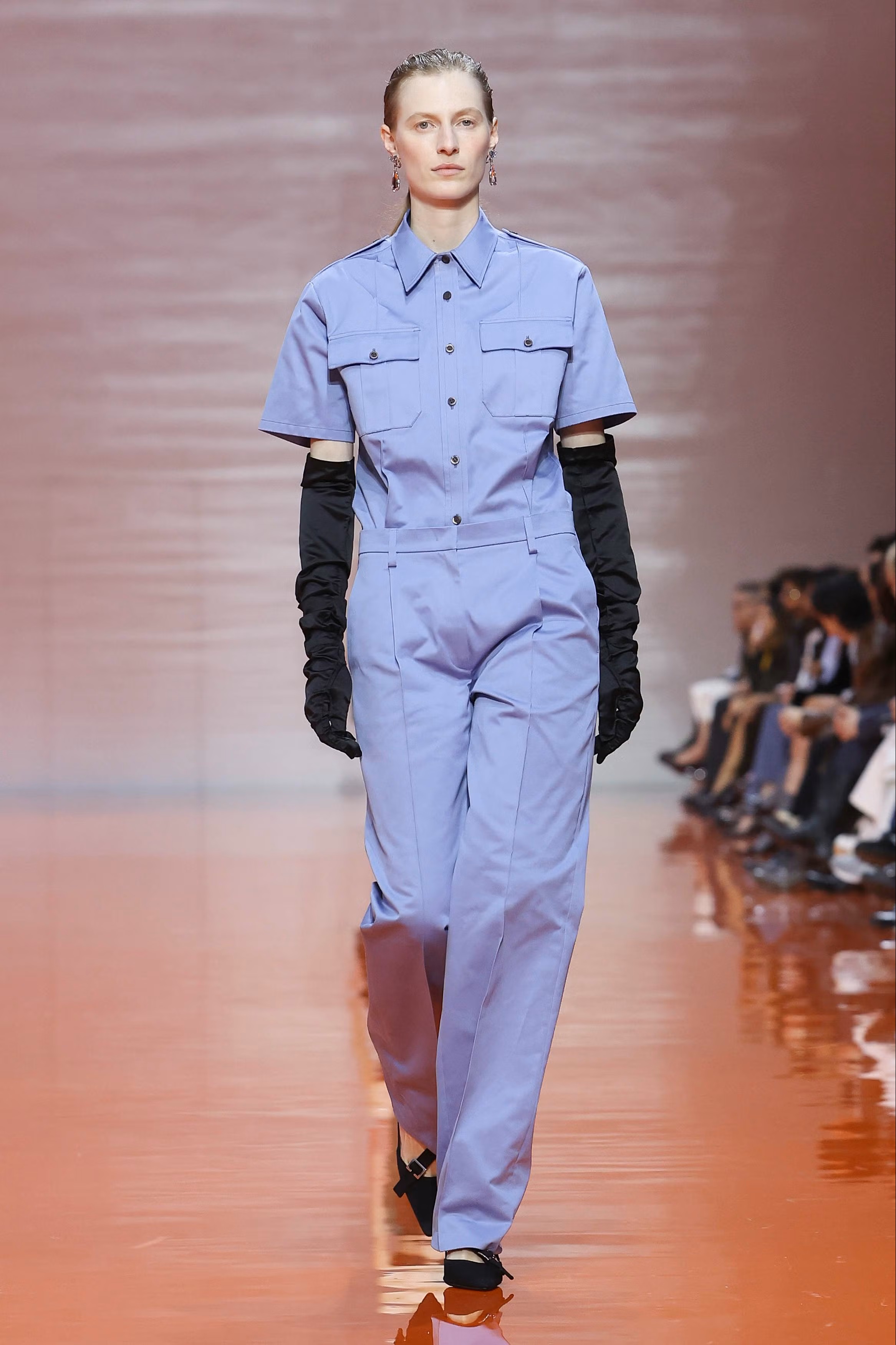 أثبتت برادا أن الجمبسوت لا يزال واحداً من أقوى رموز الأناقة الحديثة، لكنه هذا الموسم جاء بتصاميم مستقبلية مع تفاصيل ناعمة.