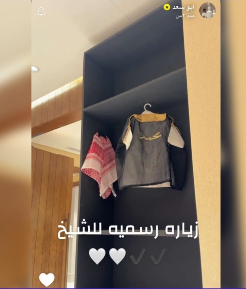 ومن ثم استغل الأمر، بحيث نشر مجموعة من المقاطع المصوّرة كإعلان لمنتجات خاصة بالأطفال، ومن ثم نشر صورة لخزانة كبيرة يعلّق عليها عباءة مطرّزة باسم "محمد"مع الحطة والعقال، وأرفقها بالتعليق: "زيارة رسمية للشيخ"، مع قلوب بيضاء.