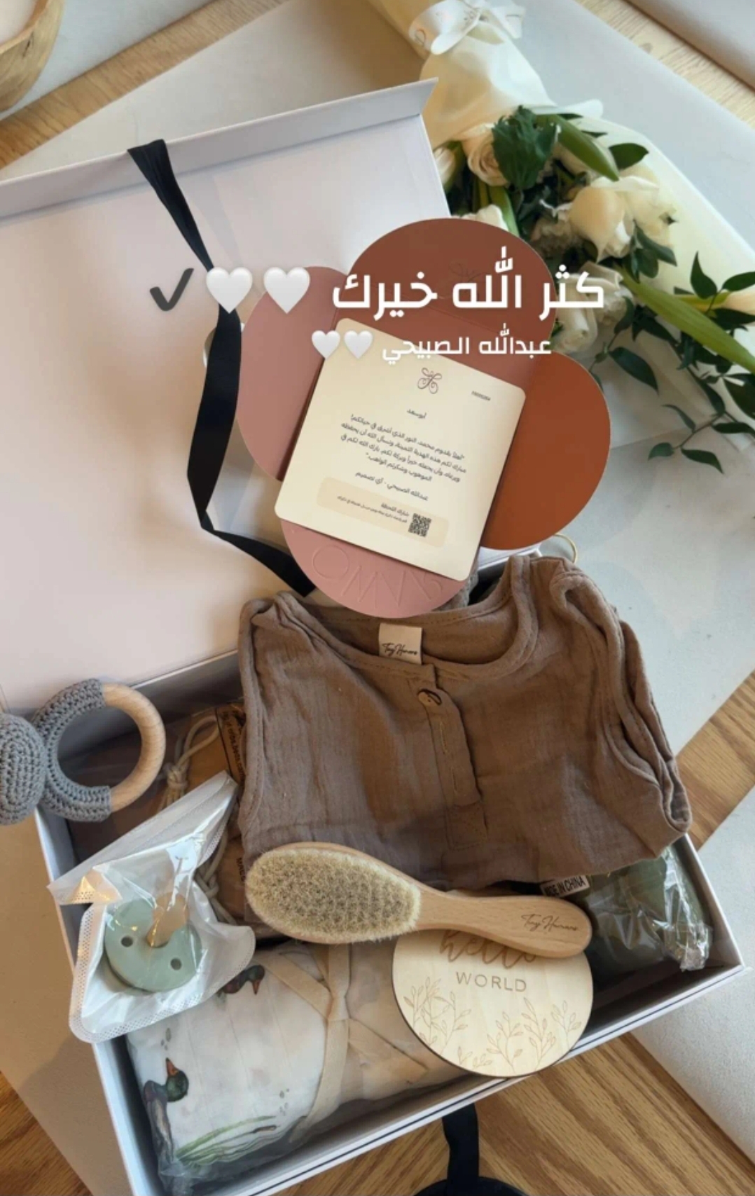 ومن ثم نشر "أبو سعد" بعض اللقطات التي تُظهر الهدايا التي تلقاها بمناسبة استقباله المولود الجديد، وأرفق الصور بتعليق عبارة عن دعاء كتب فيه: "اللهم لك الحمد حمداً كثيراً يليق بجلالتك وعظمتك. اللهم لك الحمد حتى ترضى، ولك الحمد بعد ما الرضى، ولك الحمد على كل حال، الحمد لله على كل العطايا والنِّعم".