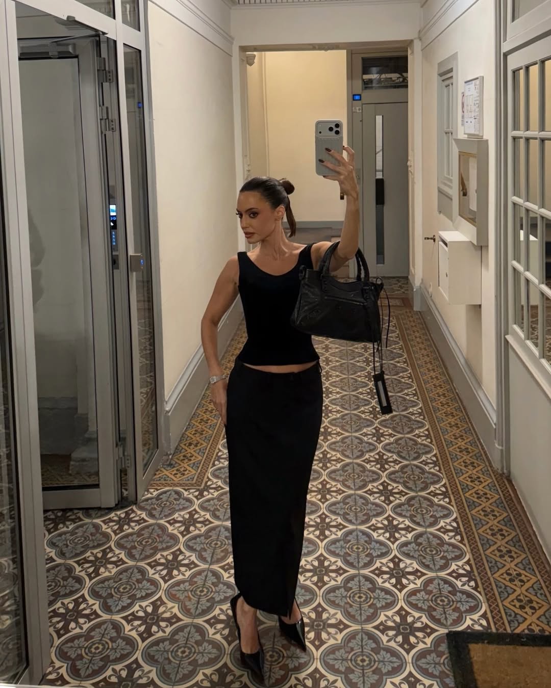 أما كارن وازن فاختارت إطلالة كلاسيكية مفعمة بالثقة خلال حضورها عرض "بالنسياغا". ارتدت كروب توب مع تنورة طويلة باللون الأسود، عكست فيها هوية الدار المتمردة بلمسة أنثوية، مع المحافظة على البساطة والجرأة في آنٍ واحد.