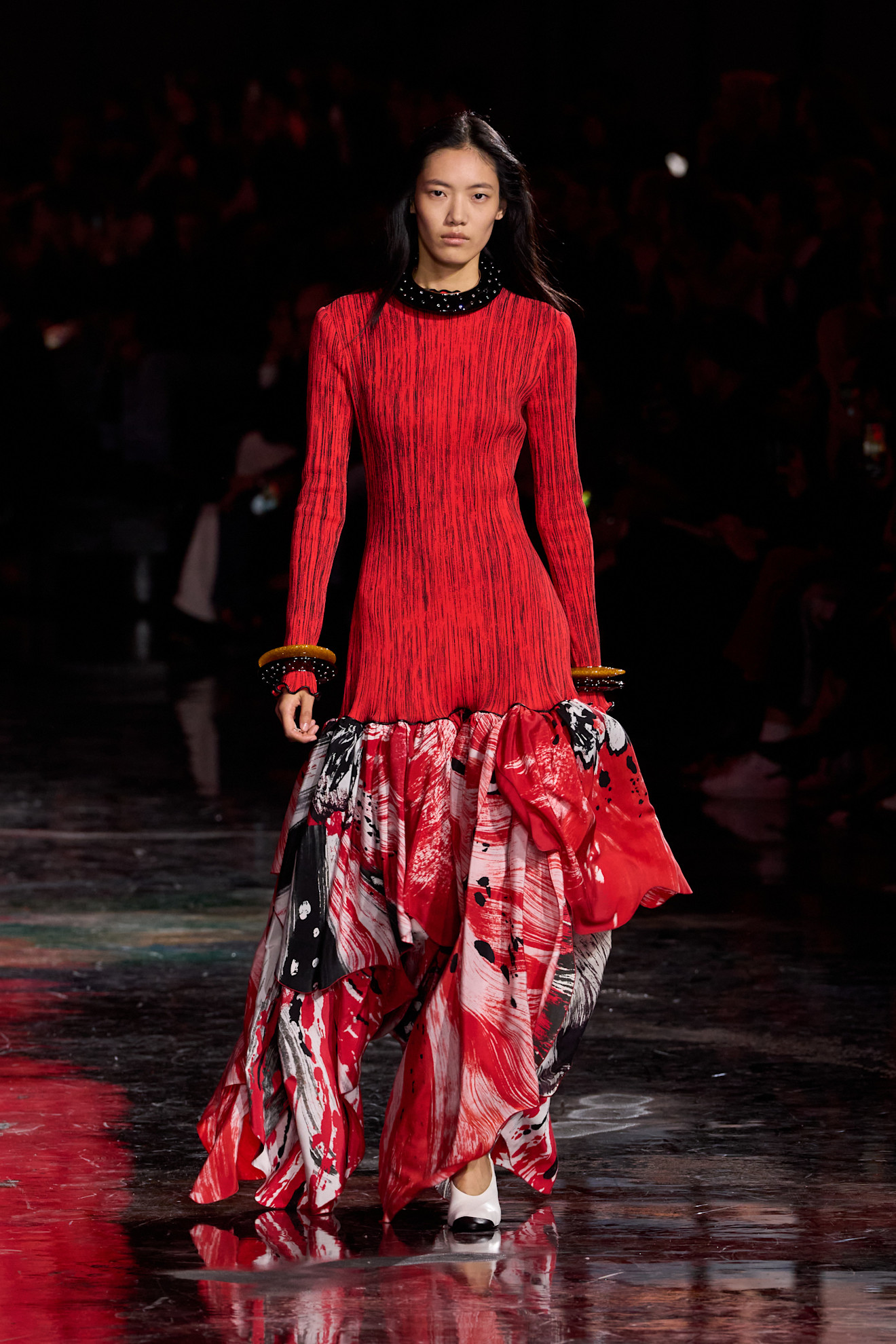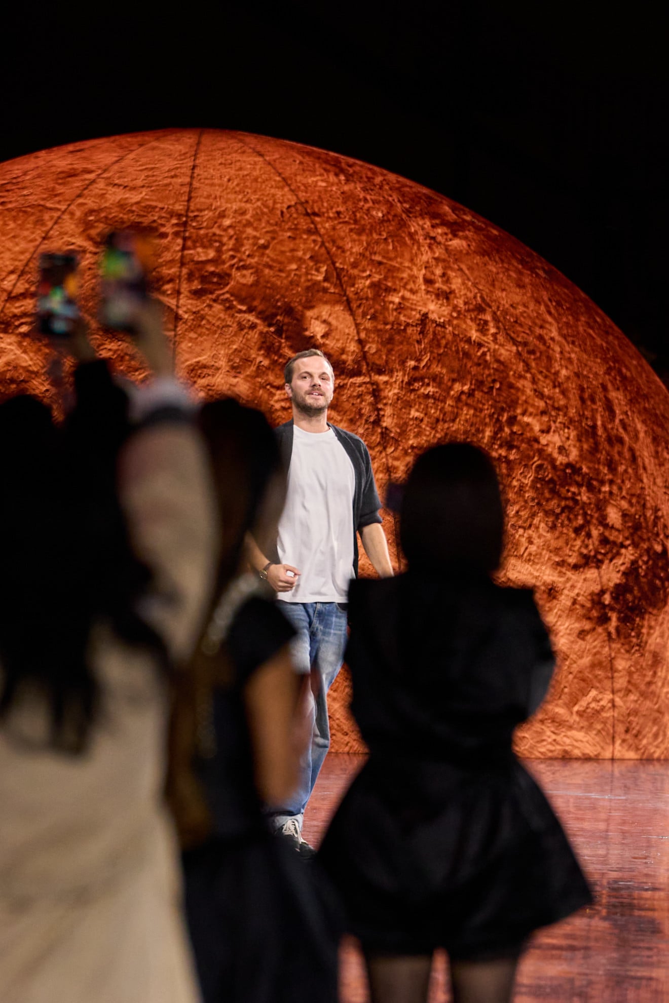 اختُتم العرض بإطلالة ساحرة ارتدتها العارضة أوار أودييانغ: تي شيرت حريري عاجي مفتوح الظهر، وتنورة ضخمة مطرّزة بالزهور الملوّنة. وبينما كانت تصفق وتتمايل نحو المصمّم على وقع تصفيق الجمهور، بدت تلك اللحظة كأنها تتويجٌ حقيقي لانطلاقة جديدة في تاريخ الدار.