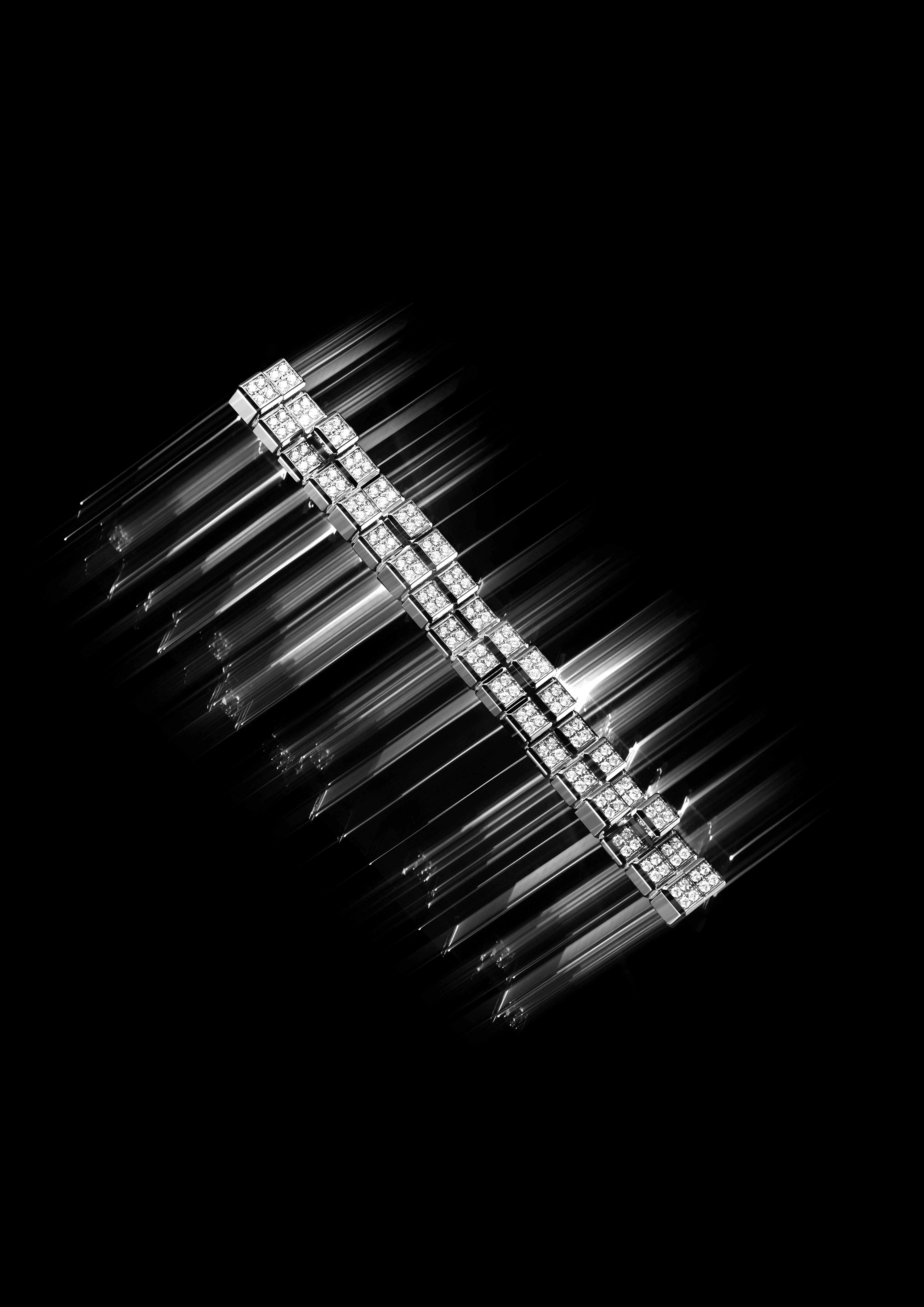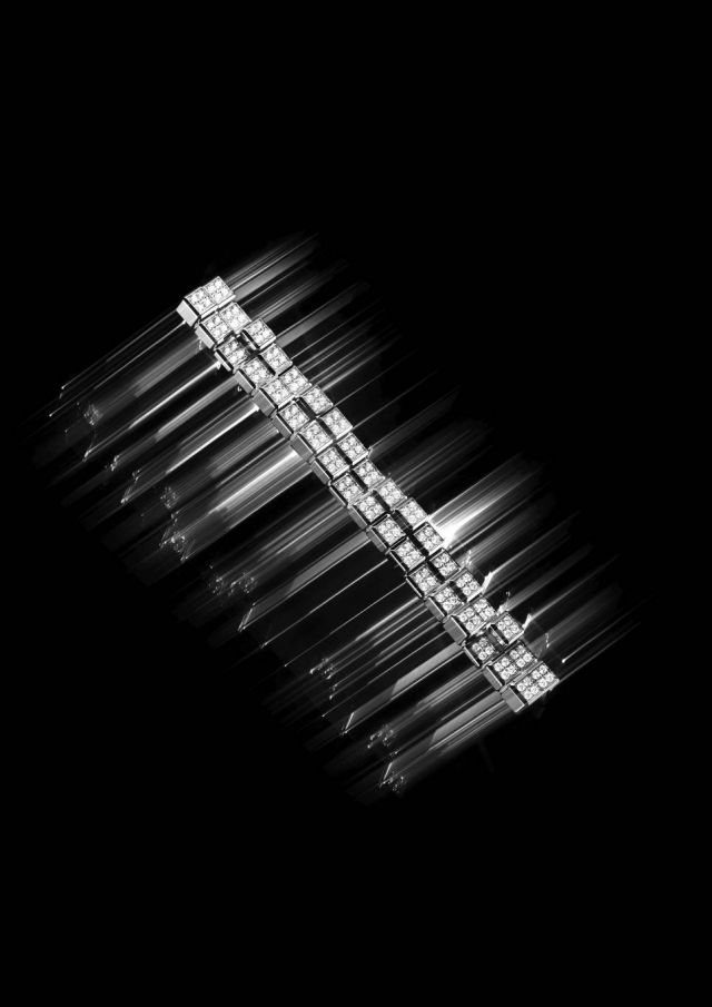 تعكس الأساور والدبوس متعدد الاستخدامات الرموز الهندسية للمجموعة من خلال مكعبات بارتفاعات متفاوتة، تشير ضمناً إلى أفق المدينة الذي تتلألئ فيه واجهات الأبراج المصنوعة من الزجاج والستيل مع تغيّر الضوء، حيث تستحضر هذه القطع في الأذهان طاقة مدينة ضخمة عند شروق الشمس، حين تلمع أسطحها المصقولة كالمرآة مثل النوافذ الساطعة بنور الشمس. يتطلب هذا التأثير، الذي تم تنفيذه بدقة، مهارة استثنائية إذ يُعدّ تلميع الأسطح غير المتساوية مهارة نادرة لا يتقنها إلا القليل، ونادراً ما يتم إنجازه داخل الدار.