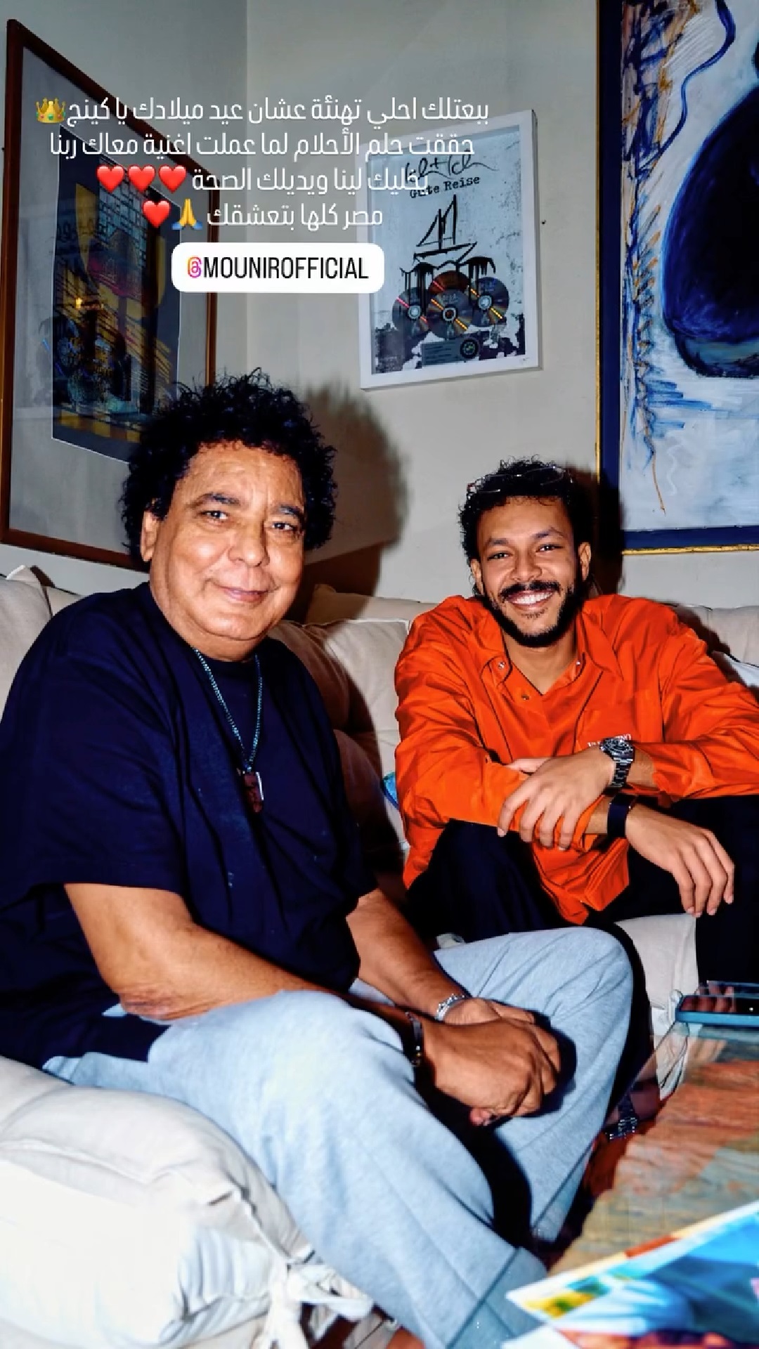 نشر مغني الراب ويجز على خاصية القصص المصورة الملحقة على حسابه الخاص بـ"إنستغرام" صورة جمعته بالفنان الكبير محمد منير حرص من خلالها على تهنئته بمناسبة عيد ميلاده، موجّهًا له رسالة خاصة، عبّر من خلالها عن شكره وامتنانه للنجم الكبير لأنه تعلّم منه الكثير، وكان سببًا في تحقيق حلم من أحلامه.