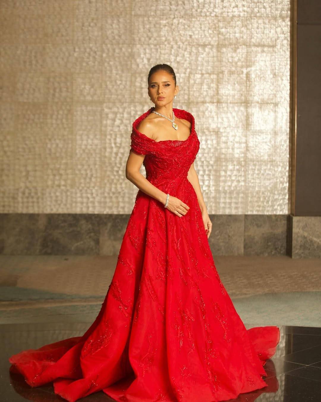 نيللي كريم تنسّق الأحمر مع الماس الفاخر